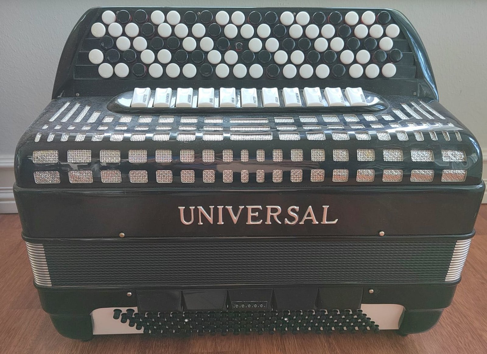 Myynnissä Universal -harmonikka. Kaikin puolin kunnossa, ainoastaan Dis/Es sävel soi jatkuvasti, näppäin puuttuu, on tallessa ja ilmeisesti ei iso juttu korjata. Näppäin tallessa. Tämä "vika" huomioitu hinnassa. Tarjouksia otetaan vastaan!! Hinta: 450 € | |