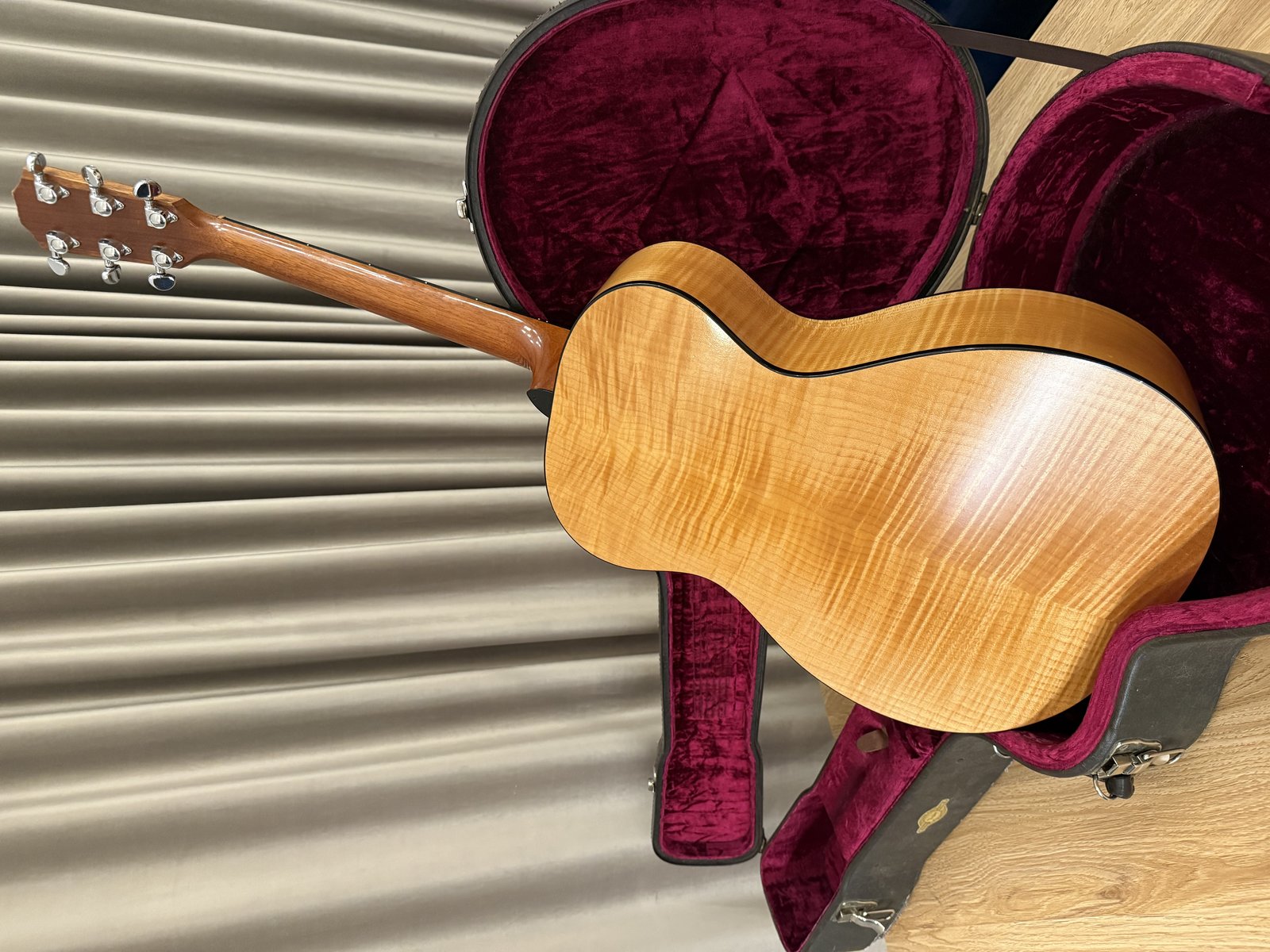 | for sale : vintage Taylor 422 1995 year with hard case. in good condition. it has few dings and scrathes on top as you can see on pictures but although its in good condition for a 30 years old guitar. BodyShape: Grand Concert (small body) Back and Sides: solid Maple Top: solid Spruce Binding: standard binding Finish: varnish finish Neck Material: Mahogany Fretboard Material: West African Ebony Scale Length: 25.5 inches Nut and Saddle : Bone Inlays: Pearl dots ,truss rod cover Hinta: 1650 € | |