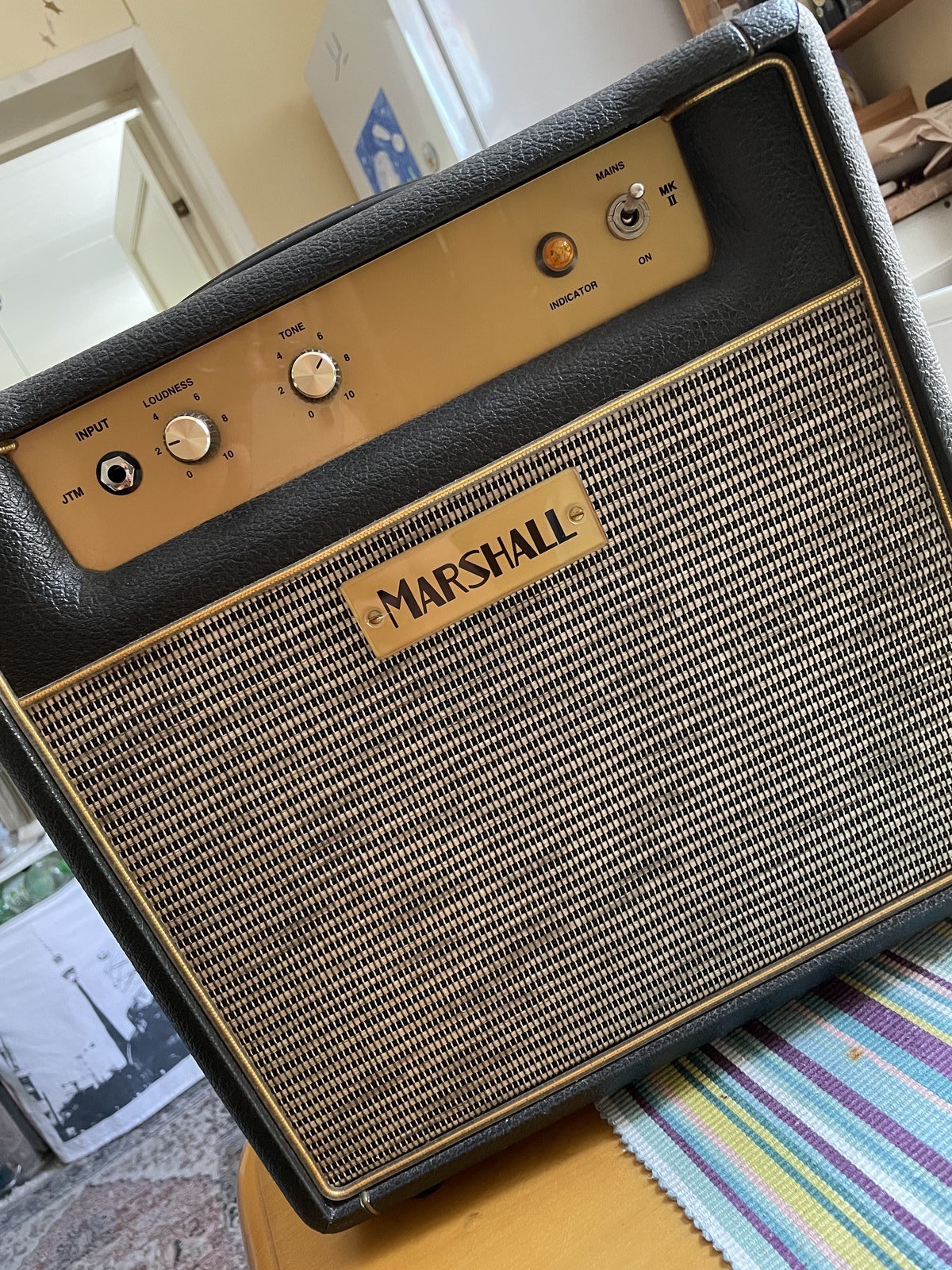 Parasta kompaktia Marshall Plexi -saundia. Neliasentoinen tehokytkin välillä 0,25W - 7W, jolla saa kotisoittoonkin passelit volat. Soi upeasti pienilläkin volumeilla, mutta tykittää tarvittaessa myös naurettavan lujaa kokoisekseen. Käsintehty Englannissa vuonna 2010. Kuten kuvista näkyy, tekninen laatu ei jätä parantamisen varaa. Vaihdossa kiinnostaa perinnehenkiset sähkökitarat, esim. Gibsonit. Välirahat onnistuu. Hinta: 880 € | |