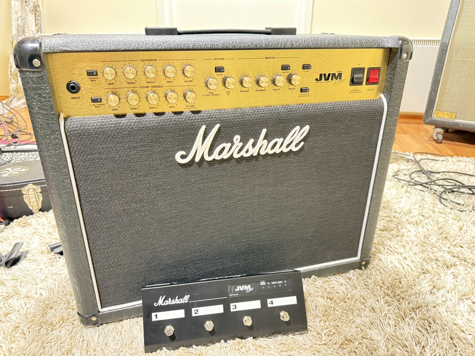 | Ylimääräisenä Marshallin JVM215C 50W Combo. Todella hyvät soundit sekä kotioloissa hiljaisemmalla että treeneissä ja keikalla. Teho ei lopu kesken. Erinomaiset cleanit ja Marshallin taatut säröt. Ei kolhuja eikä käytön jälkiä, erittäin hyvässä kunnossa. Mukaan footswitch. Speksit tästä linkistä https://www.thomann.de/fi/marshall_jvm215c.htm Lähetys matkahuollolla ostajan piikkiin mahdollista. Testata voi Oulunsalossa. Hinta: 750 € | |