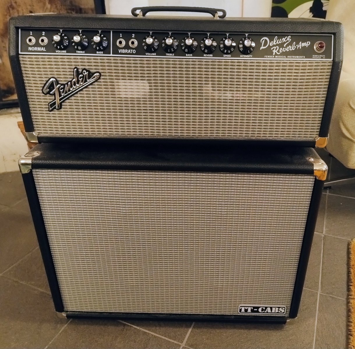 | Fender vintage reissue sarjan täysputkivahvistin ja teemaan sopiva teetetty kaappi. Limited edition, vahvistimia valmistettu rajallinen erä vuosina 2014-2016. Suojapussi ja jalkakytkin. Hinta: 2000 € | |