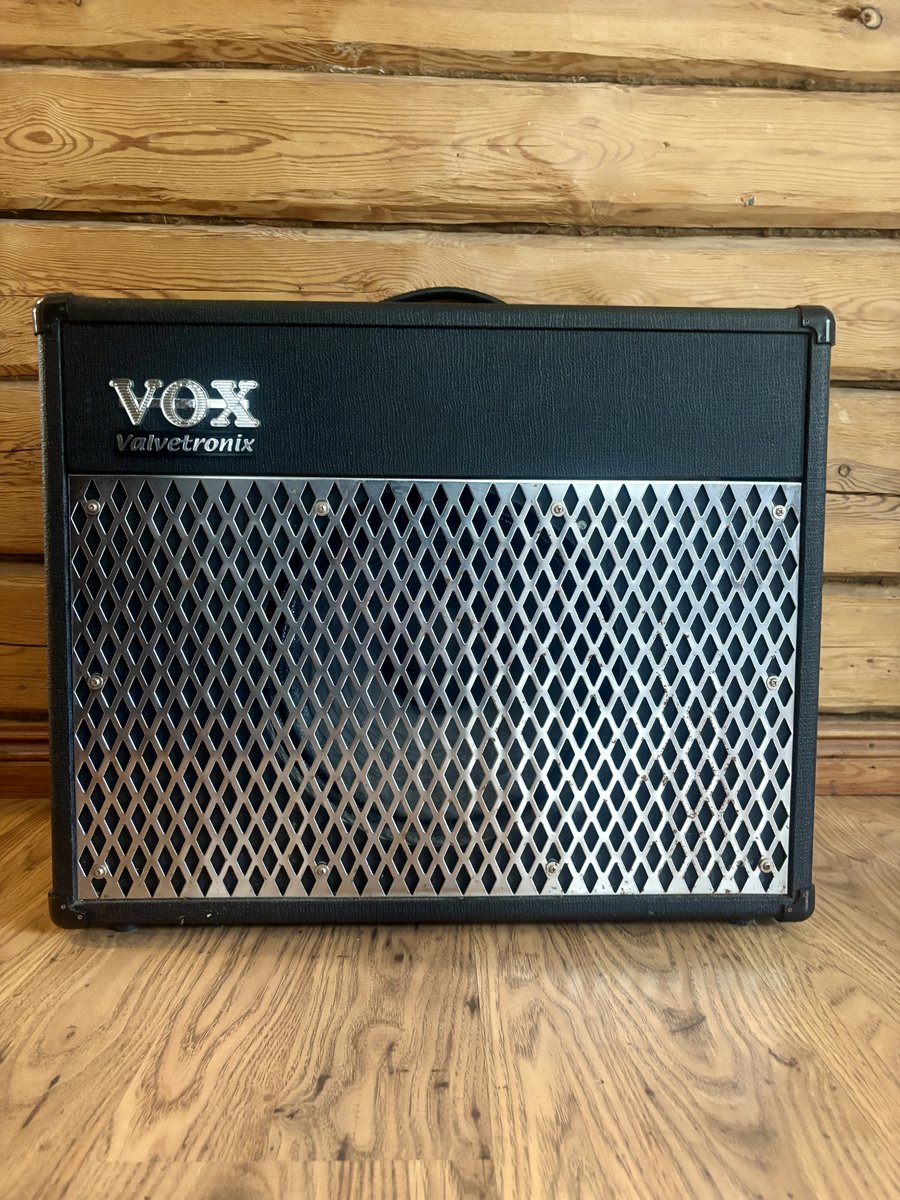 Hinta tarkistettu! Täysin kunnossa oleva Voxin mallintava hybridivahvistin (etuasteessa 12AX7-putki). Vähän käytön jälkiä takana (näkyy kuvissa). Myyntiin laittaessani ja testatessani muistin, miten hyvä soundi tässä – varsinkin Voxin omissa mallinnuksissa on. Myös Fender-mallinnukset toimii hyvin ja puhtaahko Blackface ottaa mm. säröjä vastaan yllättävän hyvin. Virtajohto ja Voxin VFS2A-jalkakytkin mukaan (ei varsinaisesti tarkoitettu tälle mallille, mutta toimii ongelmitta). Hinta: 125 € | |