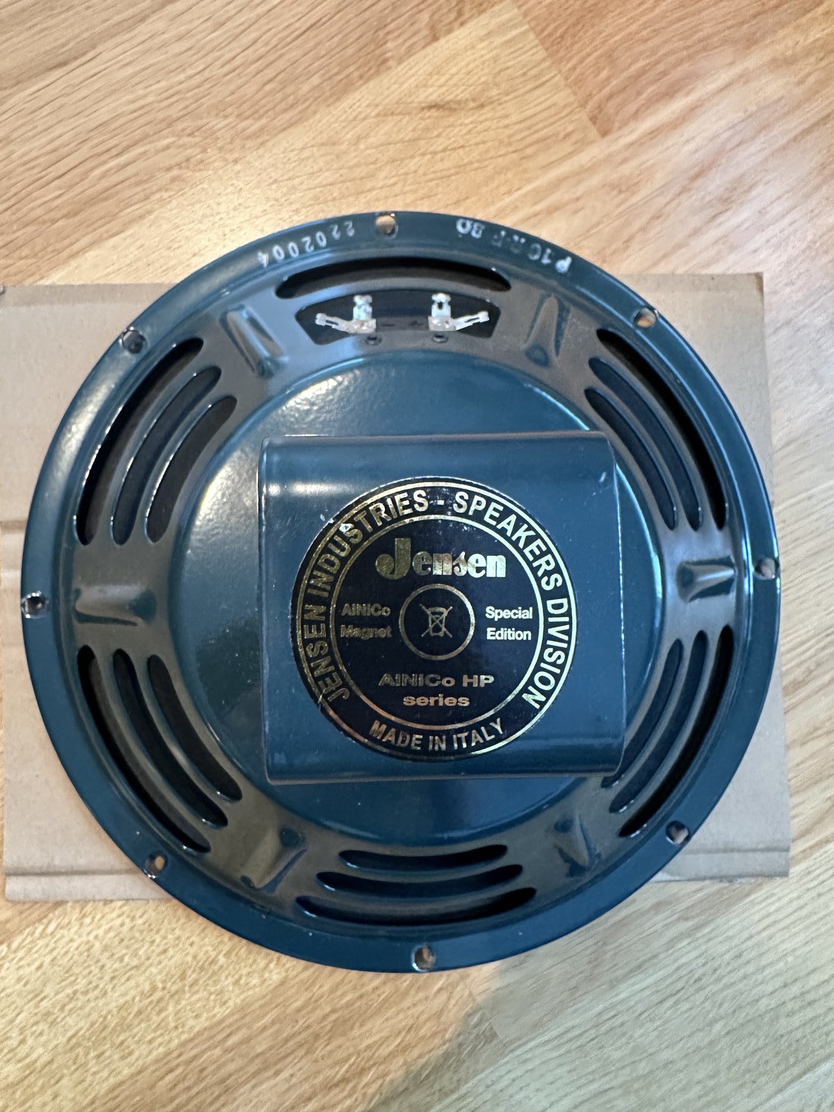 10" Alnico, 25W, 8 Ohm https://uraltone.com/jensen-p10r-f- … der-10-8ohm-25w-92-5db-kaiutin.html Pikaviestillä alkuun. Ei vaihtoja. Hinta: 65 € | |