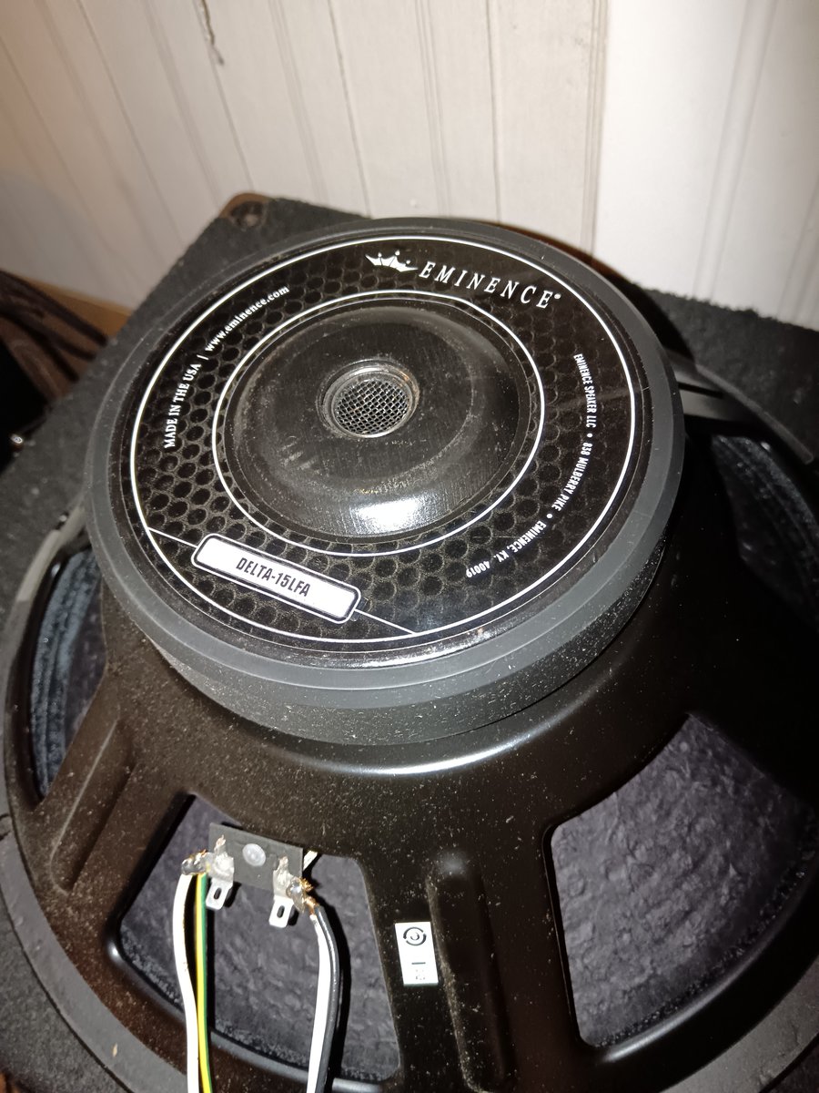 Eminence delta-15lfa 2 kpl, 60 e ja 40 e. Molemmat 90 e. Hyväkuntoiset paitsi toisen kartiossa on pieni siisti reikä (näkyy kuvassa), siksi halvemmalla. En ole huomannut vaikuttavan ääneen isollakaan volalla. RTO Ratho Hamburg 15" PA-380/8 1 kpl, 30 e. Speksit näkyy kuvasta. Hyväkuntoinen. Kuvan DIY 2 x 15" kaappi myös kaupan, 30 e. Karun näköinen, mutta soi isosti ja rämisemättä. (Lev. 68, syv. 45, kork. 86 cm, pyörillä 95 cm) Kaappi elementeillä 100 e. Elementit voin lähettää, kaappia en. Hinta: 60 € | |