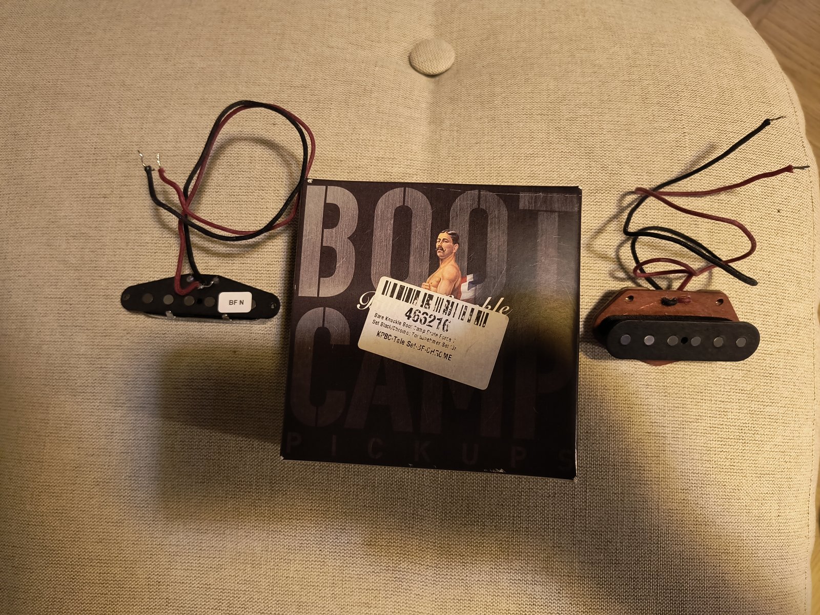 | Myydään BKP:n bulkkia Boot Camp -sarjaa olevat True Grit humbuckerit. Ostettu käytettynä täältä, pelkät mikit ilman originaalia pakkausta. Tallamikki on isommalla napavälillä. Johtoa on n. 30cm ja 27cm (talla). Mikit olivat minulla suoraan rungossa kiinni, eli kierteet on porattu pois ja eivät toimi enää kehys-asennuksessa (ilman omaa virittelyä). Resistanssi näyttää heittävän jonkin verran sivuilla ilmoitetusta; 14,6k ja 9,9k. Päällysmuovit ovat reunoista hieman kohollaan (kts. kuva), mutta näyttäisi syntyneen jo valmistusvaiheessa. En tiedä onko tavallista, mutta huomioitu hinnassa. Nouto Kuokkala/keskusta -akselilla, tai postitus +8¤. Yhteydenotto pikaviestillä. https://www.bareknucklepickups.co.u … ickups/bootcamp/details/1/humbucker Hinta: 120 € | |