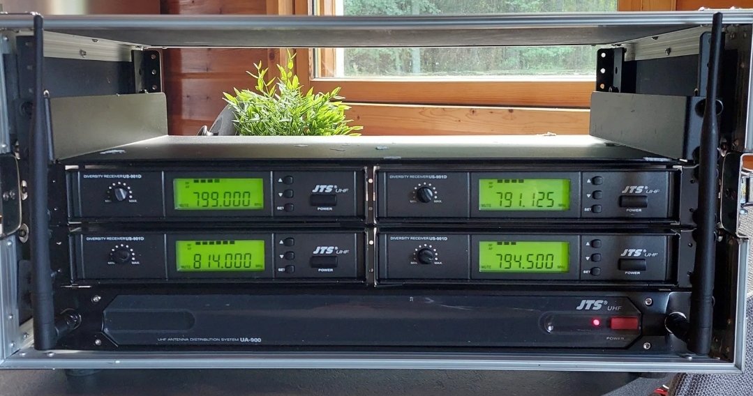 | UA-900 (1kpl) aktiivinen mikrofoni antenniyhdistäjä US-901D (4kpl) antenni mikrofoni vastaanotin CM-204 (3kpl) pääpantamikrofoni PT-950B (2kpl) langaton lähetin Hinta: 450 € | |