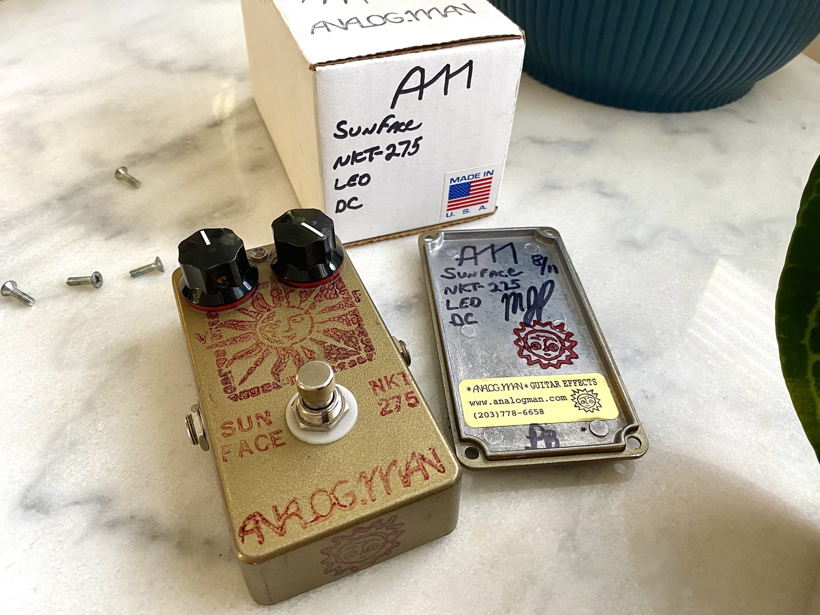Tämän myyminen todennäköisesti tulee kaduttamaan. Yksi maailman hypetetyimmistä fuzz face-tyyppisistä fuzzeista. Analogman-laatua. Tässä on käytetty autenttisia germanium NKT275-transistoreita. Puhdistuu erinomaisesti kitaran volumella. Analogmanin pajalta ledillä ja DC-jakilla. Sisältä löytyy bias-säätö.Eli voi käyttää pariston lisäksi myös perinteisellä 9V center negative -virralla (Huom. Ei ns. Daisy chainia, vain eristetyllä) Pedaali on erittäin hyvässä kunnossa, pientä käytön jälkeä ja pohjassa Dual Lockia. Kulkee alkuperäisessä laatikossaa. Näiden hinnat pyörii maailmalla yleensä 700-1200¤ hujakoilla. Jotain efektejä voi tyrkyttää vaihdossa, mutta myös rahalle tarvetta. Hinta: 650 € | |