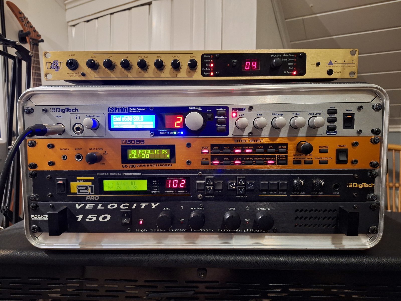 | Kuvan kolme etuastetta lähtisi seuraavalle omistajalle. Eli kuvassa ylimpänä oleva Art dst 4, Boss gx-700 ja Digitech gsp21 pro (tähän vaihdettu Legend-chippi eli on käytännössä tuo Legend malli. Mukaan saa alkuperäisen chipin) Tästä myös joku aiempi omistaja sahannut räkin kiinnikkeitä lyhyemmäksi. Tästä kuva ilmoituksessa. Tämä ei kuitenkaan vaikuta räkkiin kiinnittämiseen. Lähettäminen onnistuu ostajan piikkiin joko postin rai matkahuollon kautta. Tarjouksia saa esittää. Hinta: 123 € | |