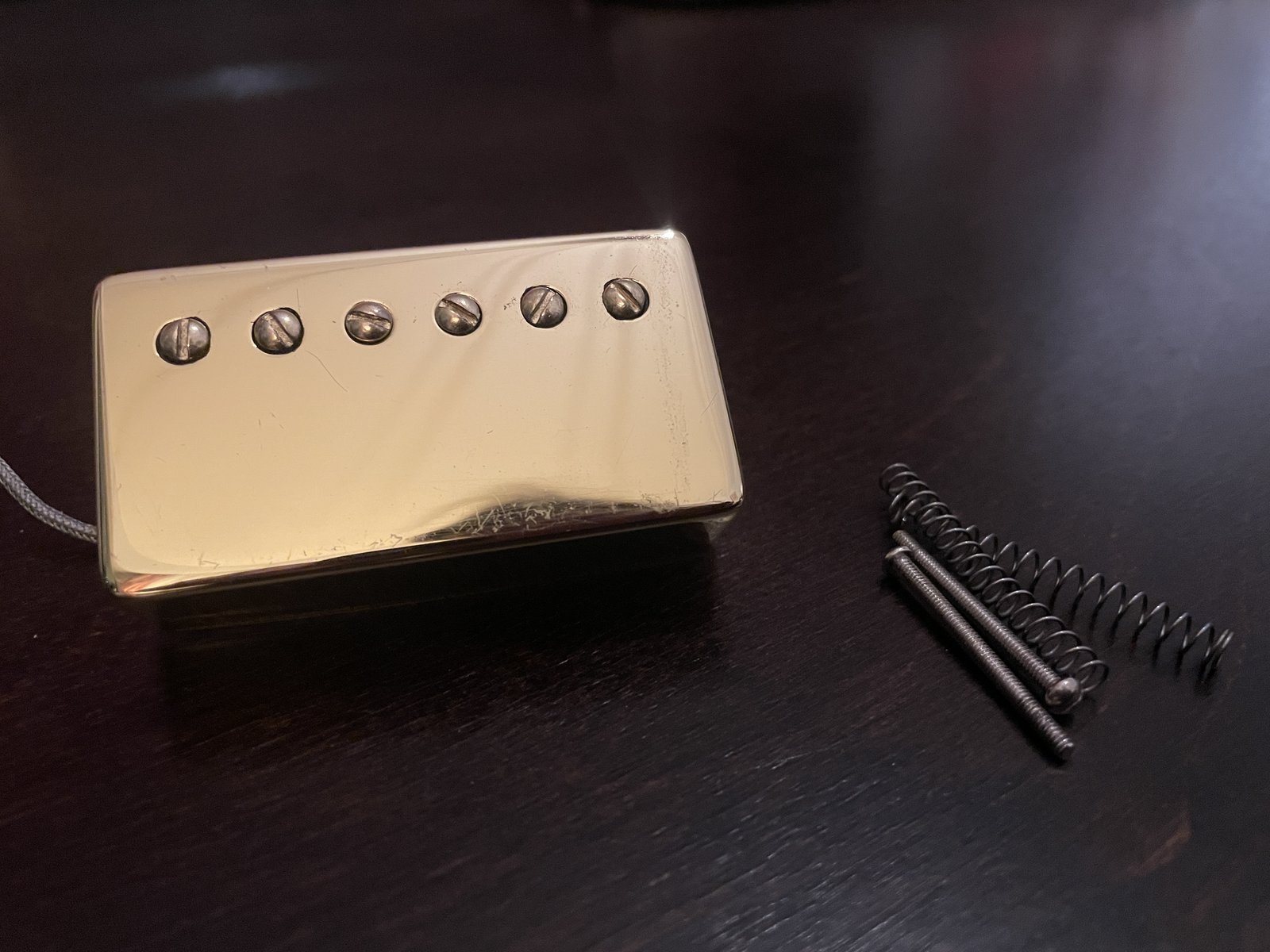 | Kiertoon Gibsonin klassikko humbucker kultaisilla kuorilla. Toimii ja on suht siisti. Yleismittarini antoi lukemaksi 7,99k. Piuhaa 26cm. Ruuvit ja jouset mukaan. Hintapyyntö 80 euroa tai tee tarjous. Nouto Tampereen Tesomalta tai postit 8,90¤ ostajalle. Hinta: 80 € | |