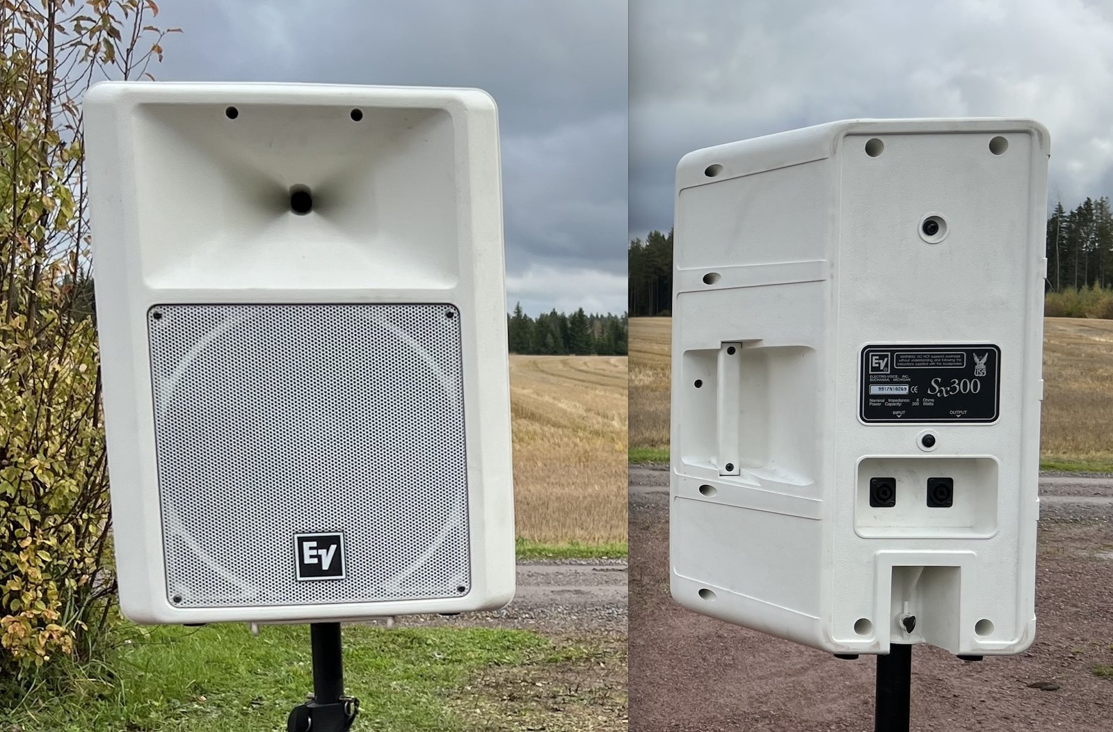 Varaston hyllyjen tyhjennys jatkuu EV SX300 valkoinen pari asennusraudoilla, kohtuullisen siistit vaikka ikää vähän jo onkin. Hyvin toimii. 150e/kpl EV SX300 säänkestävä pari asennusraudoilla, vähän maalitahraa ja kulumaa, elementtejä vaihdettu alkuperäisiä vastaaviin. Viimeksi elokuussa pihafestareilla bändihommissa ja hyvin soi. 250e/kpl (uudet siellä 1300e ylöspäin/kpl) EV ZLX-12 Ehkä kahdesti demottu edellisen maahantuojan varastojäämäpari. Uutta vastaava kunto ja EV:n toppapussi mukaan 285e/kpl VARATTU EV ZX-1 Sub Myös kahdesti demottu varastojäämäpari EV:n toppapusseilla 285e/kpl VARATTU Hinta: 150 € | |