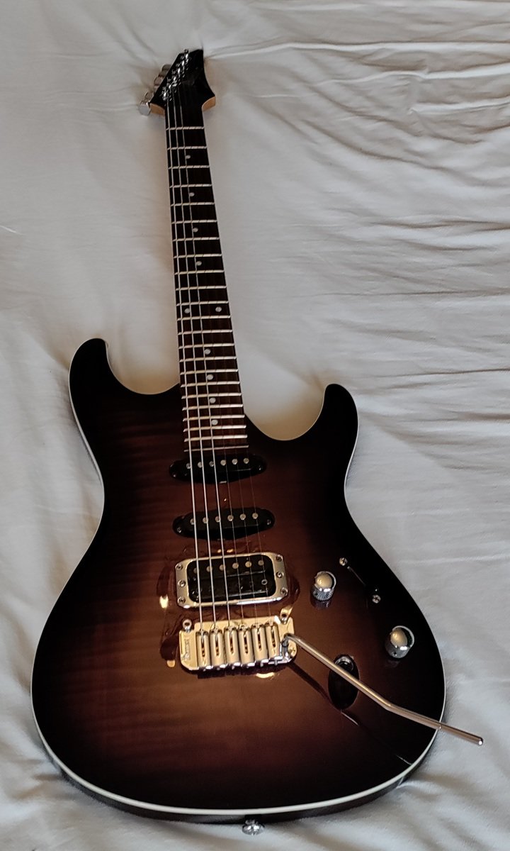 | Nyt myynnissä viimeisen päälle puunattu otsikon mukainen kitara, hyvin tyypillinen 22 nauhainen edullinen kampi Ibanez humbuckerilla ja kahdella single coililla. Minulla tämä on ollut vain joitain viikkoja, sillä ostin sen Kunnosta & Myy -harrastukseni vuoksi. Myyjä ei osannut kertoa omistushistoriaa, mutta veikkaan iäksi useita vuosia sillä nykyisissä malleissa satula on istutettu otelautaan, tämä väritys ei ole saatavilla ja tämän jakki oli löystynyt kontaktihäiriöiseksi. Lista tehdyistä töistä (kaikkia näitä olen tehnyt myös ammattilaisen alaisuudessa): - Nauhojen tasaus, kruunaus, hionnat ja kiillotus. Otelauta putsattu ja öljytty. - Edellinen omistaja korvannut rikkuneen satulan grafiittisatulalla. Tämän irroitin, putsasin uran ja kiinnitin suoraan - Puuttuvan kammen tilalle hankittu Gotohin kampi - Alkuperäinen kontaktihäiriöiseksi löystynyt jakki vaihdettu Ibanezin varaosaan - Viimeisen päälle säädetty soittokuntoon (tallan jouset, kaula, kielten korkeus ja kaari, hienovire) Suurimmat kosmeettiset viat jakin ympäristössä, erillinen kuva niistä. Jyväskylän Viitaniemessä pääsee testaamaan ja ostamaan. Mukana tulee kantopussi mistä voi sanoa vain "toimii se vielä". Kitara on tällä hetkellä standardi D vireessä valmiina tykittämään Bodomia, mutta voin tuunata sen standardi E:hen ennen myyntiä. Ostaa kuka haluaa mutta sen sanon, että jos minulla olisi ollut asiantuntijan laittama kitara kun aloitin niin minusta olisi voinut tulla jotain. Teknisiä tietoja ja hintavertailua voi tehdä vaikka näissä osoitteissa: https://www.ibanez.com/eu/products/detail/sa260fm_4l_02.html https://www.thomann.de/fi/ibanez_sa260fm_vls.htm Hinta: 250 € | |
