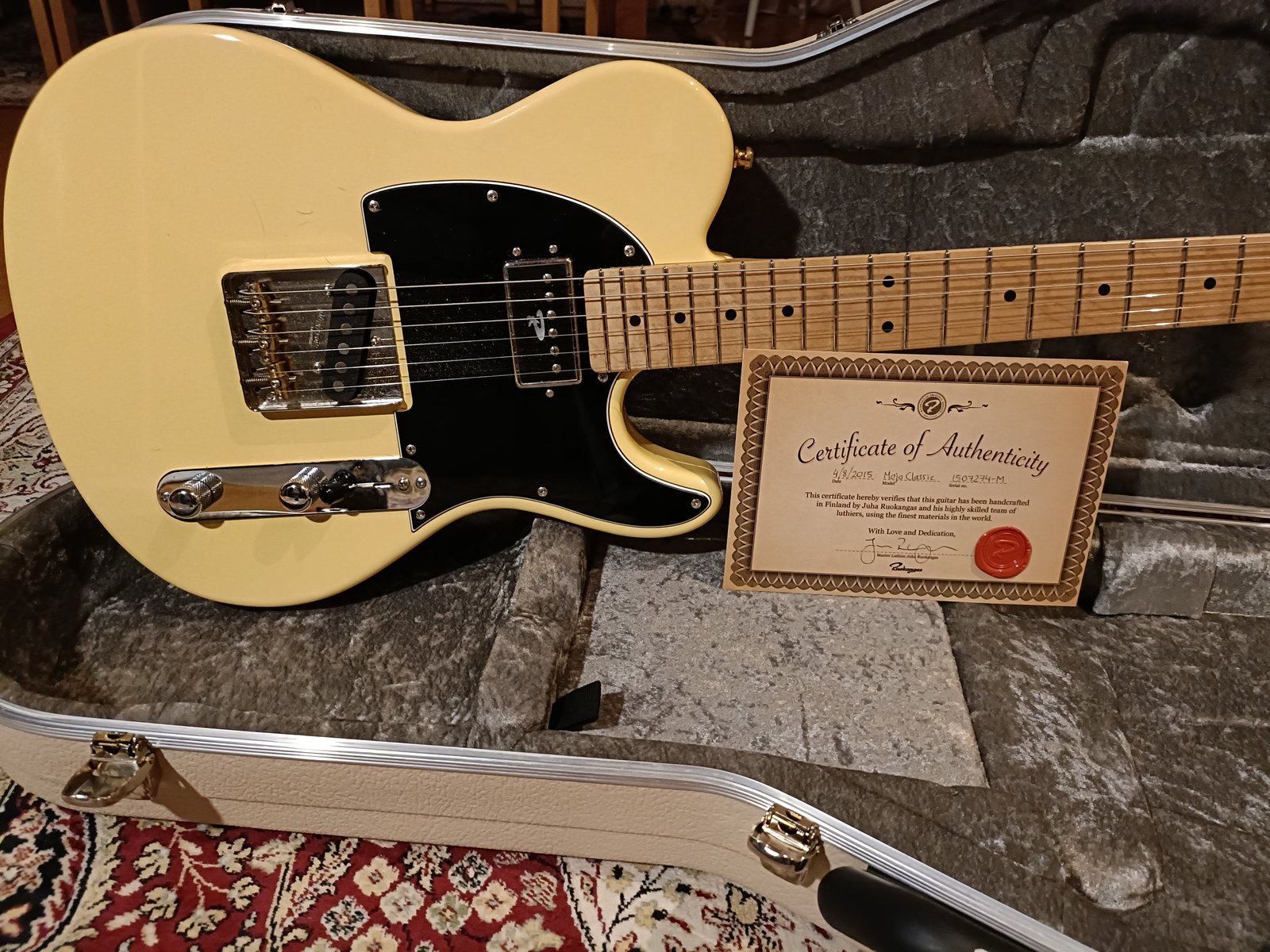 | Helkkarin kova Esquire 2:lla mikillä - liput laput löytyy - kova orkkis case - toinen Control plate - about 3,2kg Vaihdossa - Fano Alt de Facto GF6 - Murphy Lab 335 - Collings I-35 Hinta: 3200 € | |