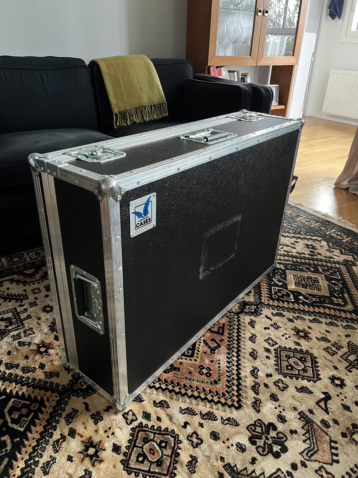 Myydään alunperin MA dot 2 flight case. Suurin osa sisäpehmusteista poistettu. Ulkomitat 23.5 x 87.0 x 58.5cm Toisen puolen butterfly lukitukset ovat vähän vääntyneet ja tarvitsevat toista kättä työntämään niitä kiinni sulkiessa. Muuten toimii kuten pitäisi. Parhaiten saa kiini whatsappilla Hinta: 80 € | |