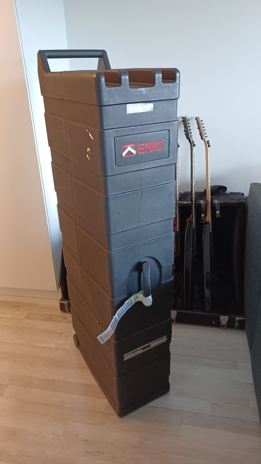 Loistava tuplakitaralaukku isoille kitaramalleille (Rhoads, King V, Arrow, Explorer) sekä bassoille. Menee lennoilla yhtenä matkatavarana, kitarat + tarvikkeet menee alle 23 kg, ei tarvitse maksaa lentoyhtiölle ylimääräistä. Pyörät alla, helppo kuljettaa, etukannen saa irti, toimii myös kitaratelineenä. Kestävä ja kevyt polyetyleenirakenne, ilmatiivis kotelo suojaa soittimia säältä. Vaihdossa voi ehdottaa laadukasta frfr-kaiutinta. Sijaitsee Lahdessa. Toimitus onnistuu Matkahuollon kautta ostajan piikkiin. Mitat: 140 x 53 x 26 cm Hinta: 500 € | |