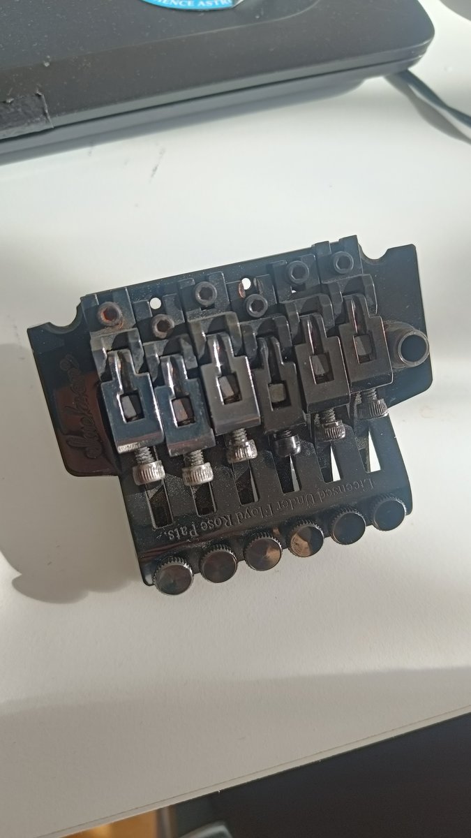 Hyvin vähän käytetty, käytännössä uutta vastaava talla. Laadullisesti vastaa hyvin lähellle original floyd rosea. Tämä on vissiin tarkalleen FRT1500, eli ruostumattomat osat. Joutaa myyntiin kun oma projekti peruuntui. Sis myös satula, tolpat, jouset, kampi jne. Nouto Oulusta tai lähetys onnistuu. Hinta tiukka. Mahdolliset postit päälle. Hinta: 140 € | |