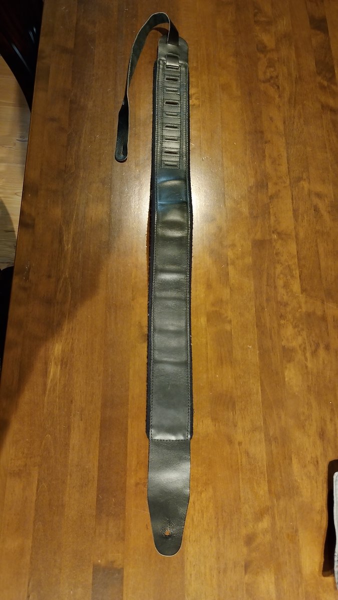 | Mukavasti pehmustettu nahkainen kitaran-/basson hihna. Maksimipituus n. 140 cm ja hihnan leveys 7,5 cm. Hinta 10 EUR + postikulut Hinta: 10 € | |