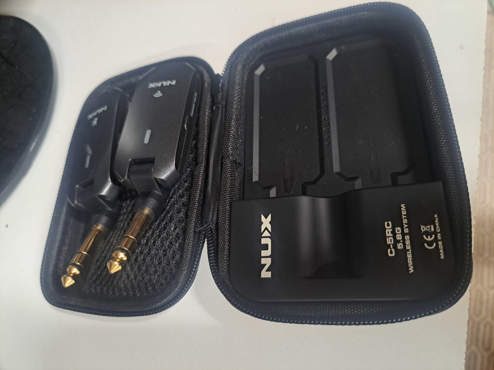 | Myydän hyvä ja varmatoiminen Nux C-5RC Langaton kitaralle tai Bassolle. Radio Link for Guitar or Bass Radio transmitter and receiver Frequency band: 5.8 GHz 24-bit / 44.1 kHz Range: 30 m Maximum number of simultaneous systems: 6 Auto-sleep mode after 10 minutes More than 4 hours battery life of the transmitter (i.e. min. 4 hours uninterrupted playing time) Latency: < 5.5 ms Dimensions transmitter/receiver (L x W x H): 108 x 30 x 21 mm Power case dimensions (L x W x H): 132 mm x 93 mm x 50 mm Weight transmitter/receiver: 34 g Weight power case: 196 g Transmitter/receiver capacity: 500mAh / 3.7V Capacity Power Case: 3000mAh / 3.7V Incl. portable charging station Hinta: 90 € | |