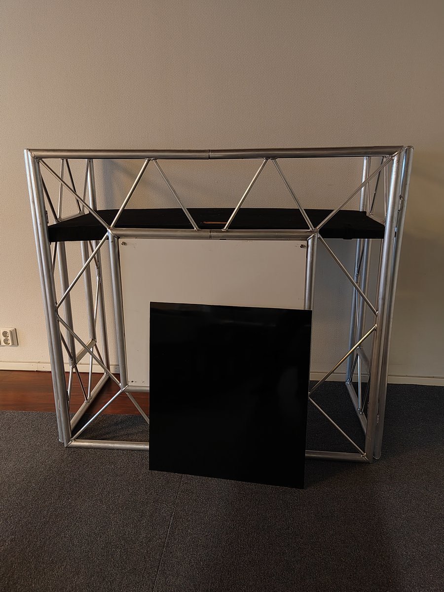 | Myyntiin vähän käytetty DJ:n lavasetti uusien lelujen tieltä. Pöydän kantopussin lisäksi mukaam tulee valkoinen levy ja musta metallilevy logoille ja vastaaville. DJ-PYÖTÄ + TRUSSIT -ADJ Event Table 2, alumiini, pöytälevy vähän käyristynyt ja kärsinyt. Kulmahyllyt mukaan. -Global truss, nelipiste trussi 1,5 m F34150, 2 kpl -Global truss F34 base plate, 2 kpl -Global truss Pohjalevy 60x60 cm 27198, 2 kpl Trusseissa jonkin verran naarmua ja käytön jälkiä. 600¤ Hinta: 600 € | |
