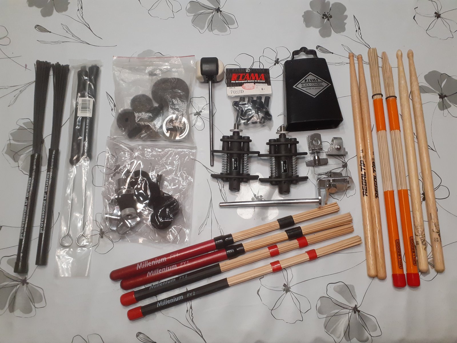 Tama Rockstar perus setti ilman symbaaleita. Made in Japan. Basari, 2 etutomia ja lattiatomi,metalli virveli ja hi-hat teline. Kasa vaihtokalvoja joista osa uusia. 3 kpl 3-jalka telineitä joista kahdessa puomi. Lisäksi 1 symbaaliteline kiinni basarin päällä. Lisäksi mukaan saa kapuloita, riisikepukoita, muoviset ja perinteiset vispilät, pari vanteeseen kiinnitettävää mikkitelinettä, basarin nuija, lehmänkello kiinnikkeineen, symbaalien tyynyjä ja kiinitysmuttereita. 50e lisähinnalla saat kaiken kotiin toimitettuna. Hinta: 400 € | |