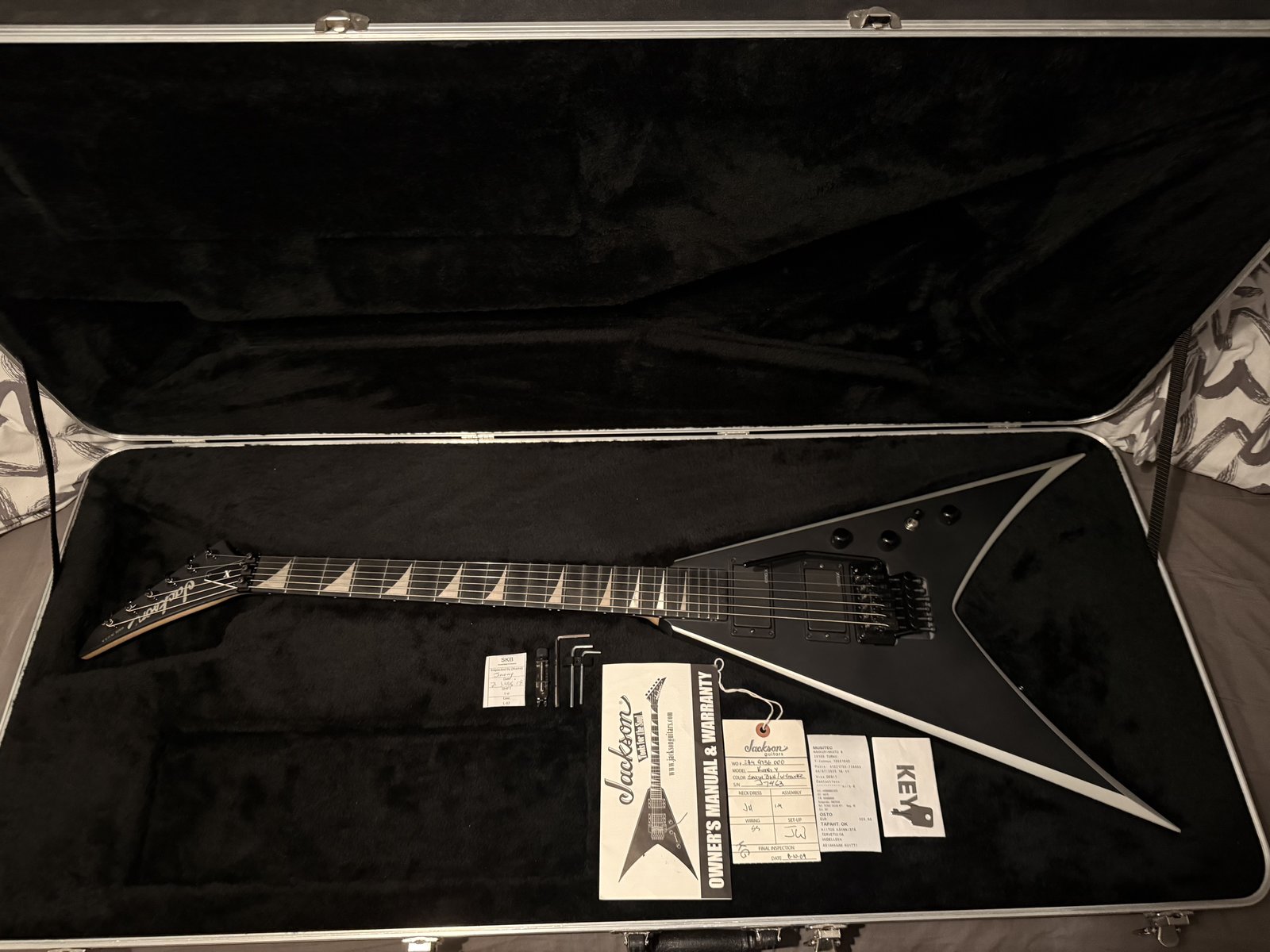 Valmistettu 8.10.2009 Sarjanumero: J7463 Otelaudassa kahta eri nauha kokoa. Ohuemmat alkaa 17 nauhan jälkeen. Ebenpuu otelauta 6-6,5mm paksu Nauhat hiottu 4.7.2025 kuitti on. Quartersawn maple neckthru. Kaulan paksuus 1 nauhalta 0.760” ja 12 nauhalta 0.825” Kaulassa ei ole lakkausta vain puun pinta ja pirun hyvä soittaa. Ei töki tai ole tahmea. Kitara ei vingu tai ole kierto herkkä ainakaan omilla vahvistimilla mitä soitellut. Reverse headstock Truss rod cover X mark. Satinblack/silver bevels body color. Sterling hopeat hain evät. Original Floyd Rose Emg81x emg60x Aktiivi elektroniikka, tone potikat aktiivit jne. Ostettu 1.4.2025 Kuitit löytyy tulleista ja alveista sekä ostokuitti. Case candyt kaikki tallessa. Kitara originaali kunnossa. Ei naarmuja tai kulumia. Kiinnostuneille lisää infoa. Ei vaihtoja kiitos. Hinta: 5200 € | |