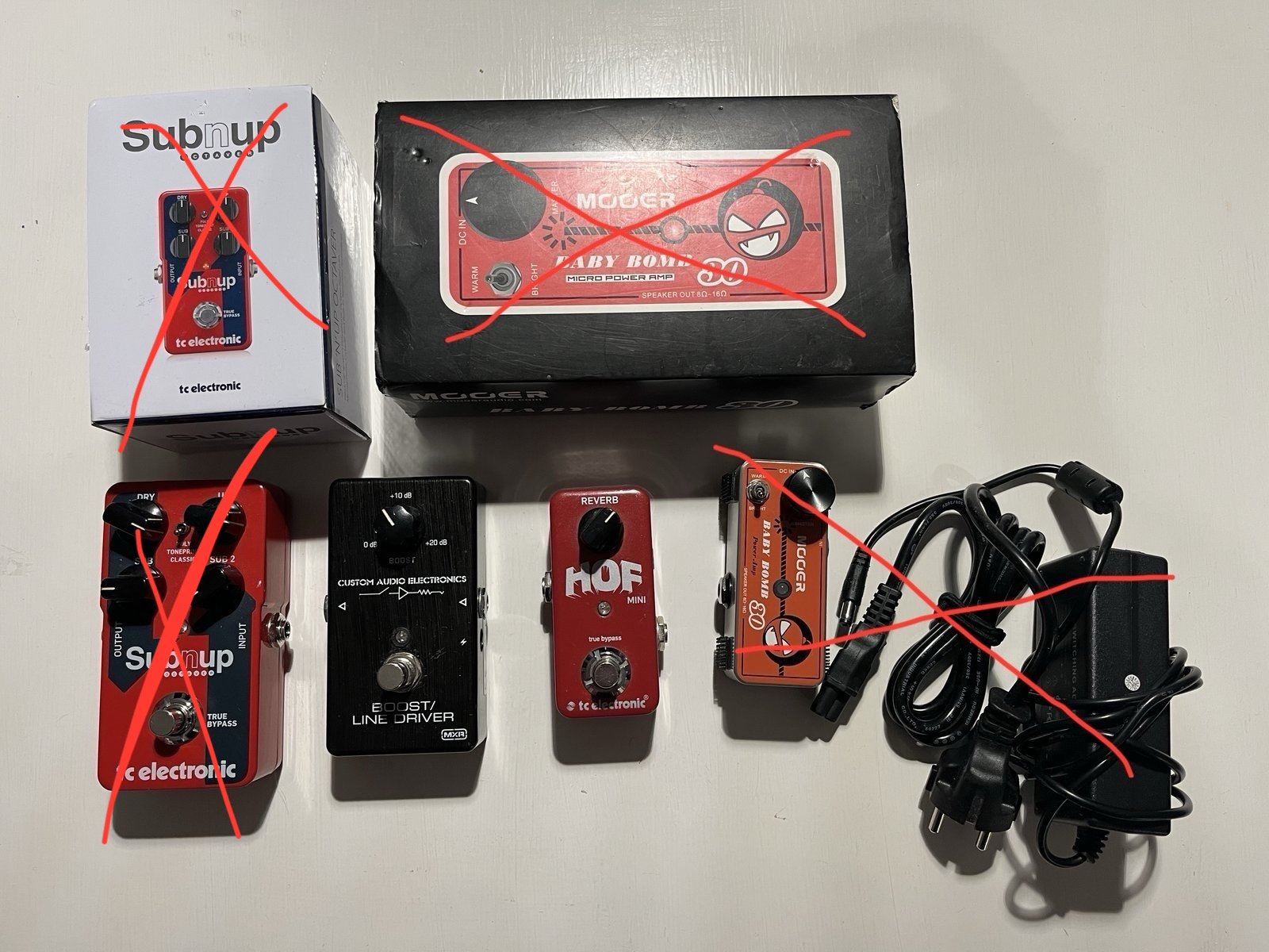 Kaikki toimii moitteettomasti. Hinnat sis. postit kotimaahan, noutajalle 8¤ hinnasta pois. Ja jos hinta ei miellytä, aina saa esittää perusteltuja tarjouksia. Näitähän voi kilpailuttaa. MXR MC-401 boost/line driver. Hinta 80¤ MYYTY TC Electronic sub n up. Laatikko on, pohjassa duallokkia TC Electronic hof mini. Pohjassa duallokkia, Hinta 55 ¤ MYYTY Mooer baby bomb 30w. Laatikko ja alkuperäinen muuntaja on, pohjassa duallokkia Hinta: 80 € | |