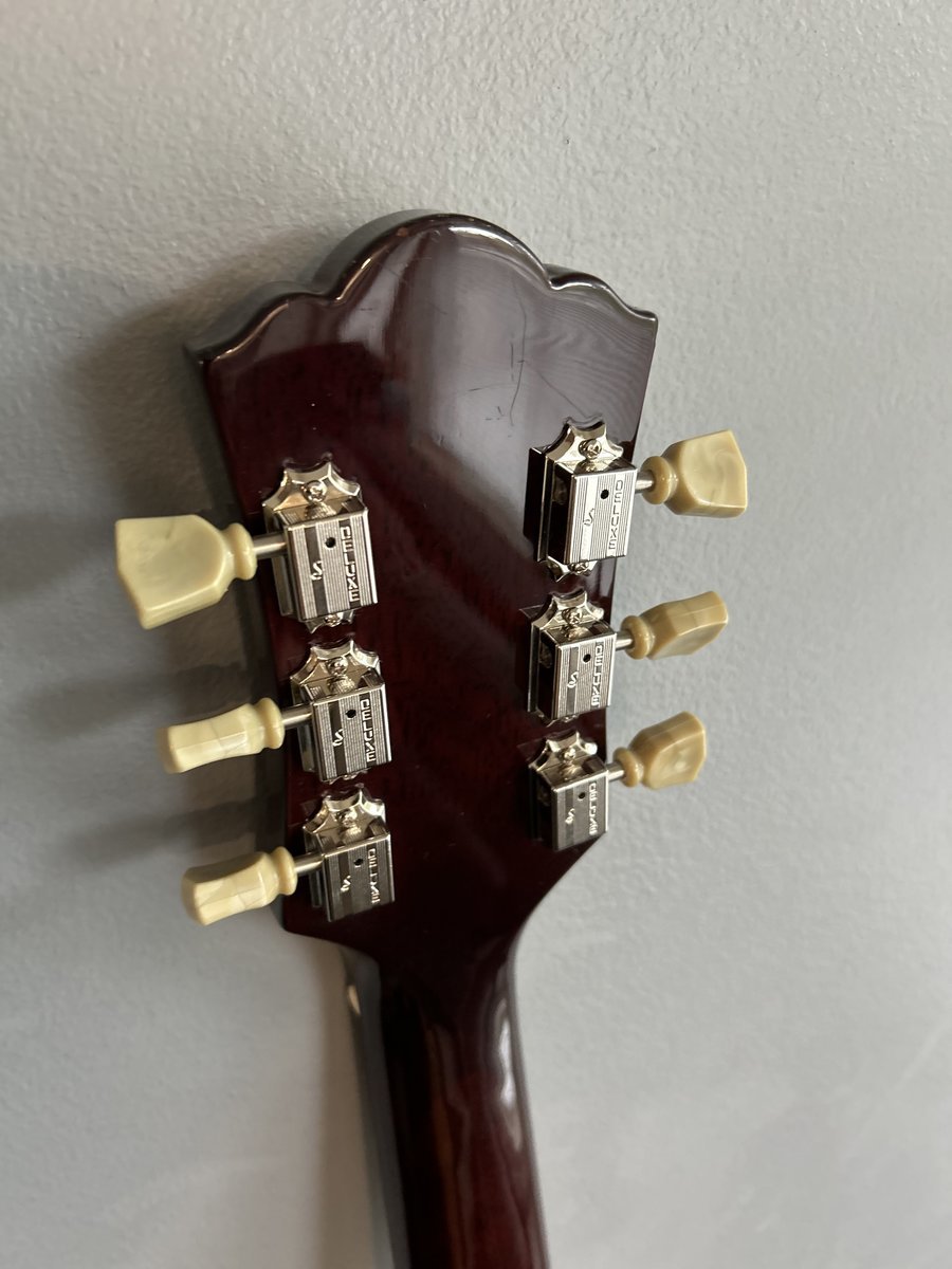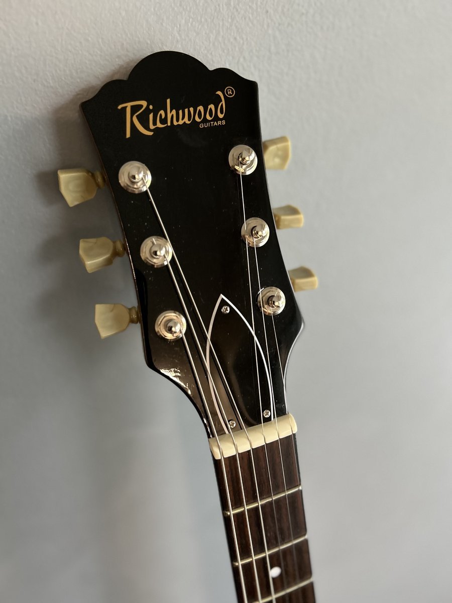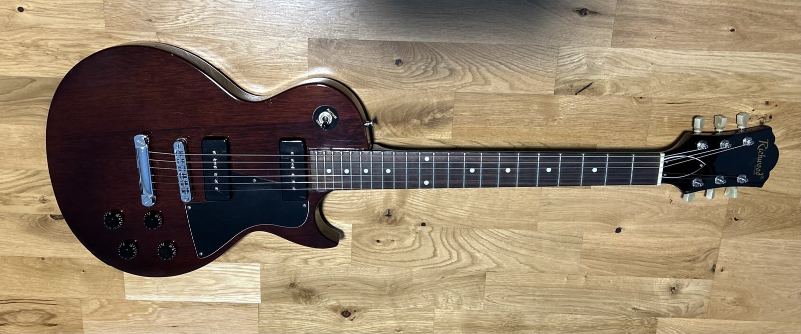 Kuvien mukainen Richwoodin Les Paul Special P90 mikeillä, mahonki runko ja kaula. Kaula 50's tyyppinen, nauhat hyvässä kunnossa, paino 3,65 kg. Kitaraan on vaihdettu mikkejä ja mikkikytkintä lukuunottamatta kaikki muut osat. - Schaller Deluxe virittimet - 3 x CTS + 1x Bourns potentiometri - Mallory konkat - Switchcraft jakki - Potikan nupit - Talla ja kieltenpidin - Gibson hihnatapit Ilman pehmusteita olevan Takamine kantopussin saa mukaan. Vaihdossa käy Telecaster runko. Tiedustelut pikaviestillä tai sähköpostilla. Hinta: 200 € | |