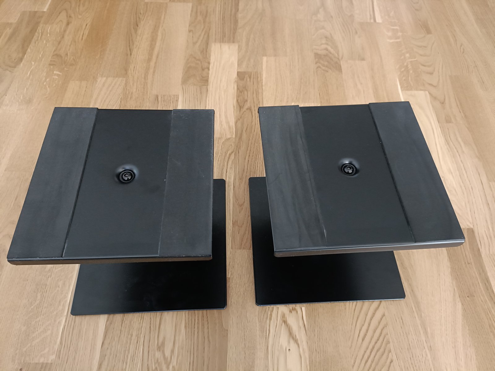 Kisai XM-101 säädettävät kaiutinjalustat studiomonitoreille. Korkeus 18-27 cm. Metallia, tukevat, itse en huomannut käytössä mitään ongelmia. Myydään tarpeettomiksi jääneinä, uudessa pöydässä on jo korokkeet monnareille (olisivat näiden kanssa liian korkealla) Myydään parina Hinta: 20 € | |