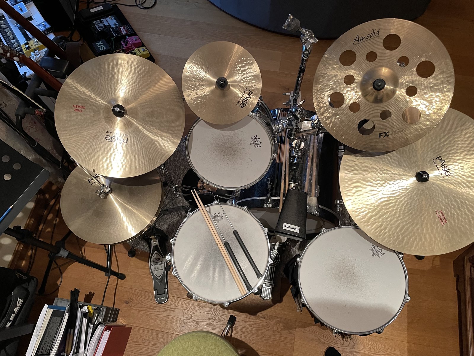 Sonor rumpusetti, basari 20", tomit 10" 12" 14", virveli 14" ja 3 symbaalitelinettä. Ei peltejä, ei rumpujakkaraa, eikä hi-hat-telinettä. Hi-hat hinnoitellaan erikseen, Tama HH905D, Iron Cobra. Kuvasta puuttuu 10" tomi. Voin tietenkin myydä pelkän setin ilman rautatavaraa. Hinta: 680 € | |