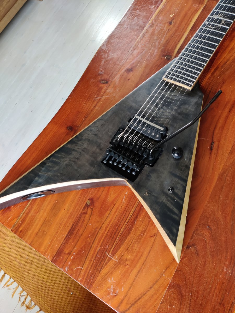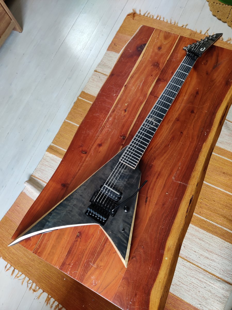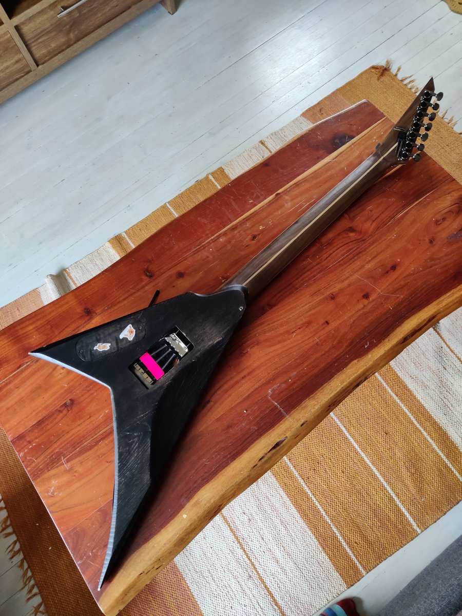Pistetääs tämä taas tyrkylle siksi aikaa että tuun järkiini. Kyseessä kesäkuussa 2024 valmistunut hevikeihäs, ollut meikällä keikoilla mukana mikä näkyy takaosan roadwornina ja parina pikku kolhuna. Näitä voin kyllä retusoida ostajan niin halutessa Hemmetin hyvä soittaa, pitää vireen ja kuulostaa aivan diaboliselta. Speksit: - Jalavarunko loimukoivukannella, petsi ja öljy pinnassa - 3p Pähkinä/vaahterakaula Eebenotelaudalla, loimukoivulistat - Elden Ring-Inlay loimukoivusta 12.välissä - 26.5" skaala, 24 XJ Rosterinauhaa - Gotohin raudat, Dimarzio Crunchlab 7 mikkinä sähköissä vola ja puolituskytkin https://www.instagram.com/p/C8XD--StwWN/?igsh=bHJvbzk4OGJqczdy Vastaava nykyään tilattuna 2700¤ hoodeilla jos onnistuu mut suostutteleen edes inlayhommiin Säätyy ostajan haluamalle setille ja vireelle Hinnasta saa ehdottaa näkemystään ja vaihdossa voi ehdottaa vaan halvempaa 7-kielistä välirahojen kans. Pikaviesti ja tekstari tavoittaa Hinta: 2000 € | |