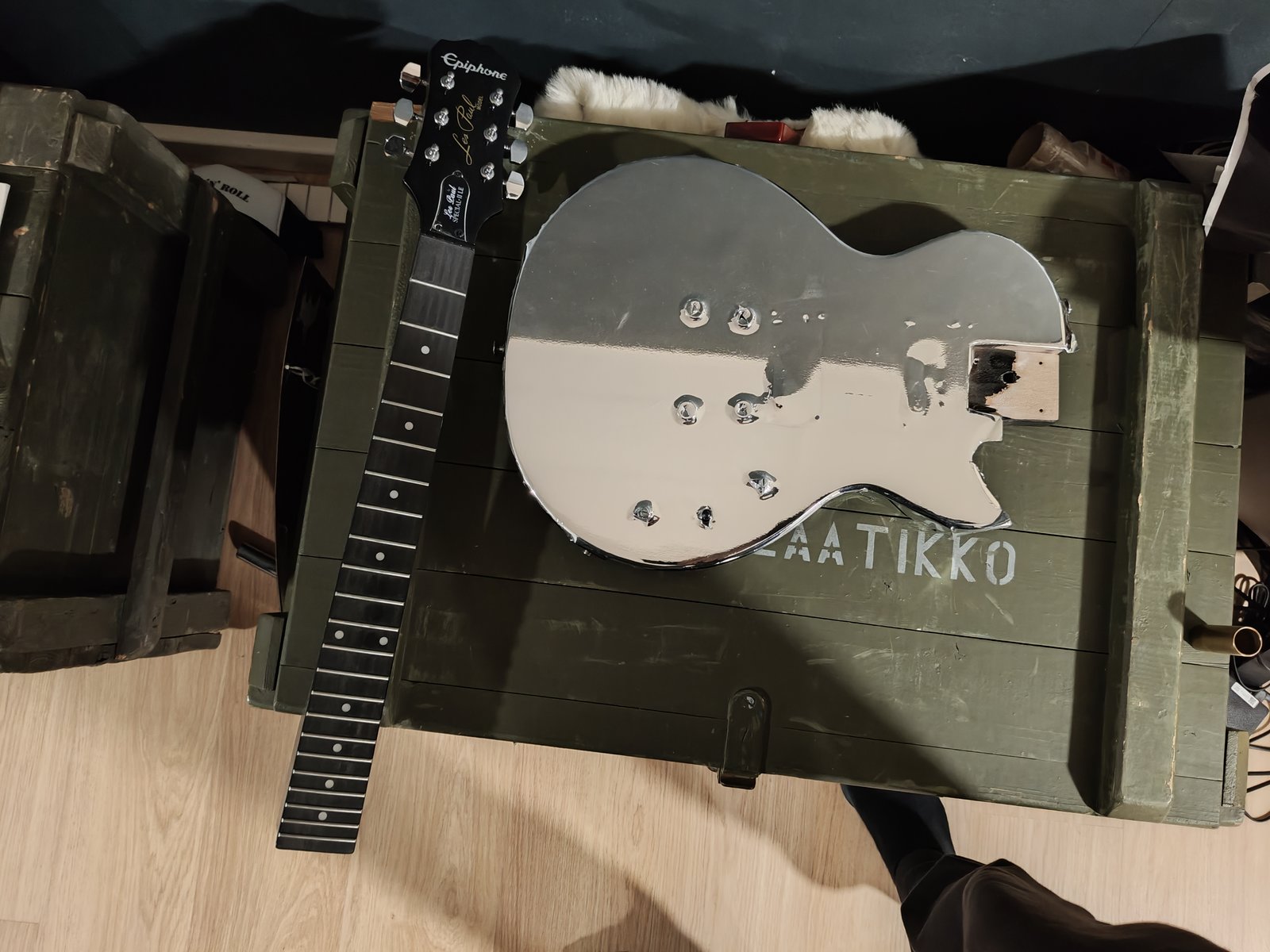 Tuommoisia pikkuvikaisia projekti kitaroita. Deanistä lähtee ääntä, muissa jotain euron vikoja ja pari kitaraa osina, mitkä projekteina. Kultaisesta epiphonesta puuttuu taaka levy, minkä takana johdot sekä "levy" missä äänipiuha kiinni. Kuvasta puuttuu yksi epiphone mikä purettu Hinta: 500 € | |