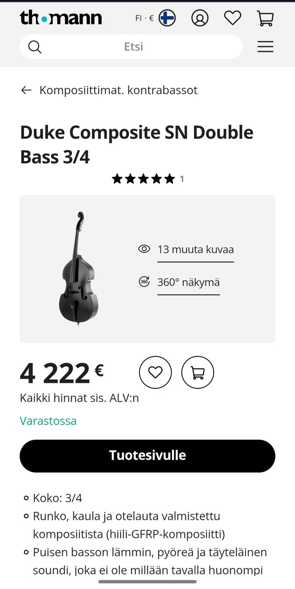 Myydään Duke composite bass, läskibasso. Nyt lähtee halvalla HP. 2500¤ vaihtohinta 3000¤. Thomann sivuilta lisätietoja Erinomainen laite varsinkin rockabilly musaan. Vaihdossa miellään saman hintainen tai halvempi kokopuubasso, myös King tai Blast Cult kontra, näistä väliraha katsotaan tapauskohtaisesti. Tapauskohtaisesti katsotaan vaihdossa voisi köydä myös Gretsch, Gibson sekä jotkut laatu vasuri kitarat ja bassot yms. Ampeg, genz-benz yms basso vahvistimet tms. Koppa kerran maalattu uudelleen. Kiinni jotkut rockabilly slap kielet Basso ollut mulla 5 vuotta pelkkänä koristeena (ei keikkailu, ei edes ollut treeni bassona) siksi joutaa eteenpäin. Toimitus 200 km säteellä PK seudusta ilmaiseksi. Hinta: 3000 € | |