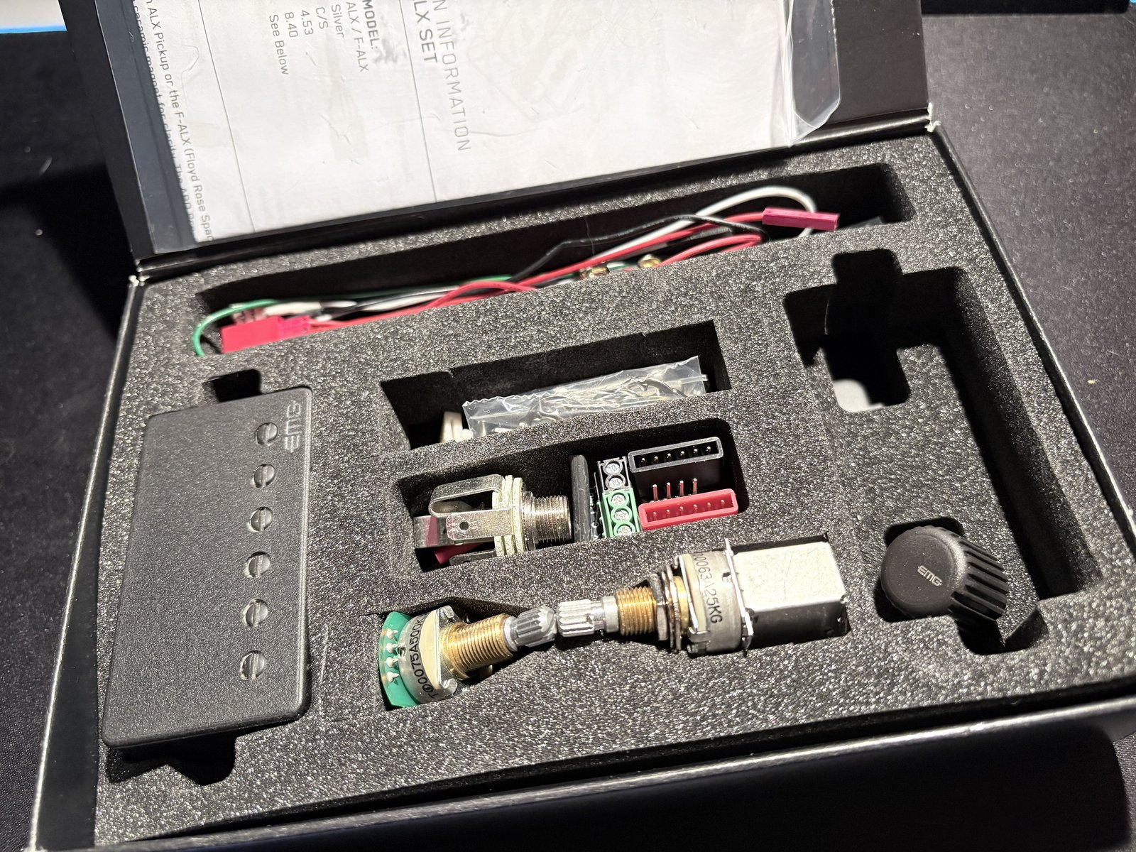 Vähän testailtu täydellinen setti jatkoon. Itse tykkään enemmän pedaalista tulevasta boostista, joten laitetaan eteenpäin. Vaihdossa voin ottaa kaikki kilkkeet sisältävän EMG H4-setin tai ihan vaan rahulia. Postikulut sisältyy hintaan, tai sitten voi tulla paikan päälle tinkimään. Hinta: 100 € | |
