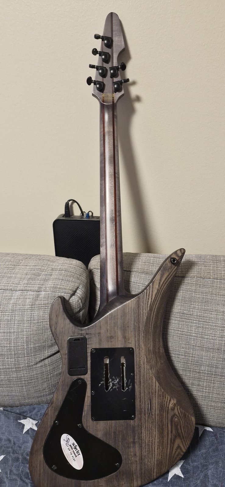 Siitä hieno schecter seuraavalle onnekkaalle, lähtee sen takia kun ei vaan ole tilaa enää. Näitä ei ihan kauheasti ole näkynyt, myöskään tällä värillä. Speksejä: -Swamp Ash -Maple/Padauk, Set-Neck w/Ultra Access kaula -Ebony otelauta -25.5” skaala -Thin C kaulaprofiili -24 X-Jumbo, stainless steel nauhaa -Schecter USA Apocalypse-VI Tallamikki ja sustainiac kaulassa -Volume/Volume/3-Way (Pickup) Switch/2-Way On-Off Sustainiac Switch/3-Way Sustainiac Mode Switch -Floyd rose 1500 talla johon vaihdettu iso messinkiblokki -Grover rotomatic 18:1 virittimet Yhteydenotot pikaviestillä tai perus viestillä. Puhelimeen en kerkeä aina vastaamaan. Ei laukkua tai koteloa joten nouto Turengista Hinta: 800 € | |