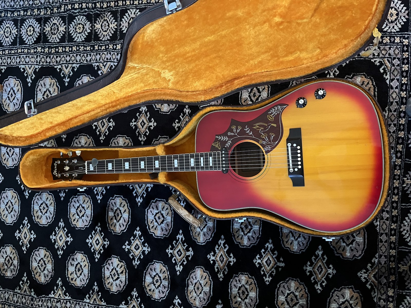 Hyväkuntoinen Ibanez Concord 684E 1975 vaihdetaan Martinin akkariin. Kitarahan on Gibsonin Hummingbird kopio. Tuohon aikaan Ibanez teki laatukitaroita Japanissa. Kitarassa on pysty-humbuker mikki sähköineen. Kaikki toimii. Myös myynti saattaa tulla kyseeseen. | |