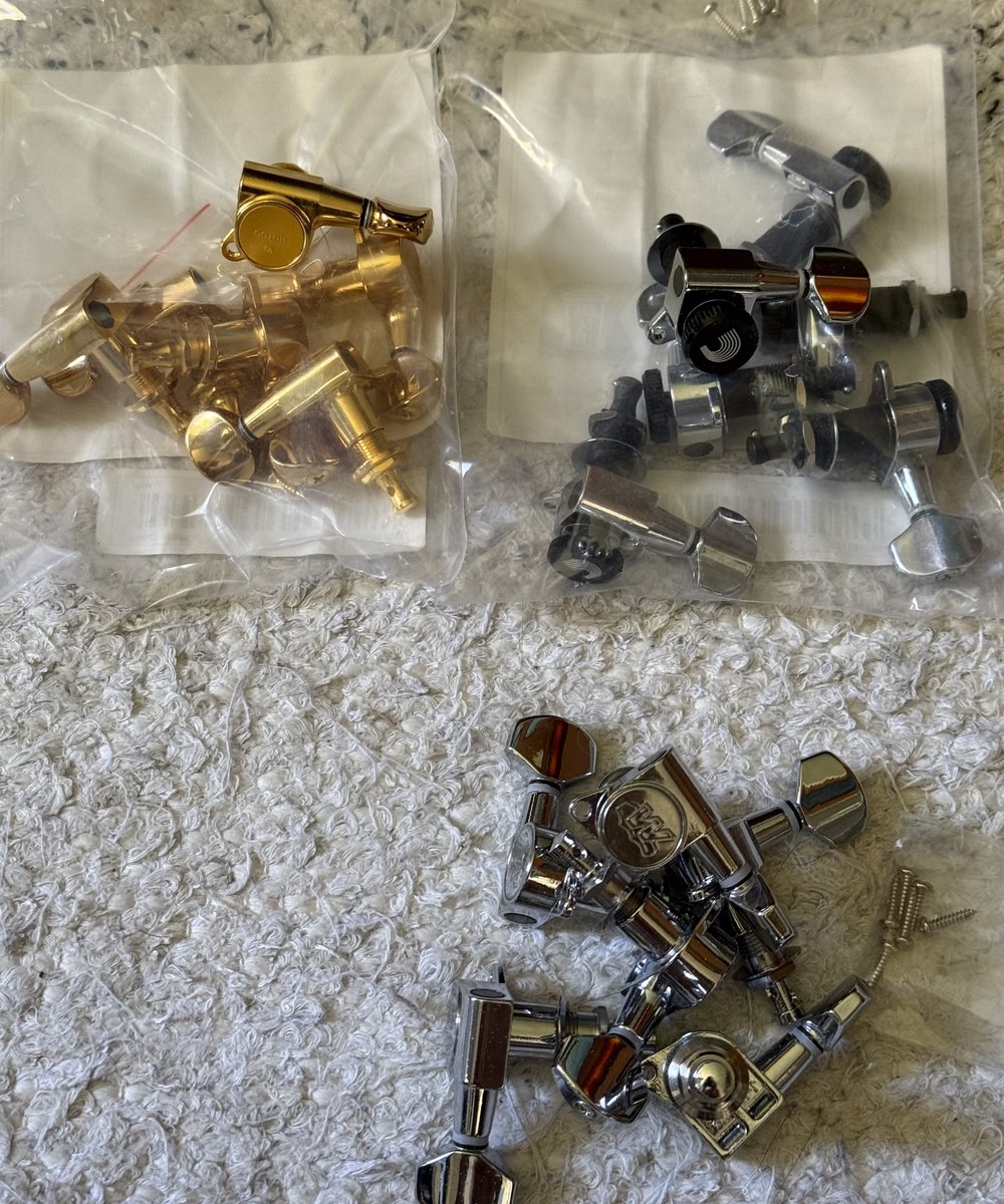 Myydään virittimiä: Vasen ylä: Gotoh 6L Gold, MYYTY Oikea ylä: Planet Waves 6L, 60¤ Alhaalla: Wilkinson 6L, 15¤ Hinta: 25 € | |
