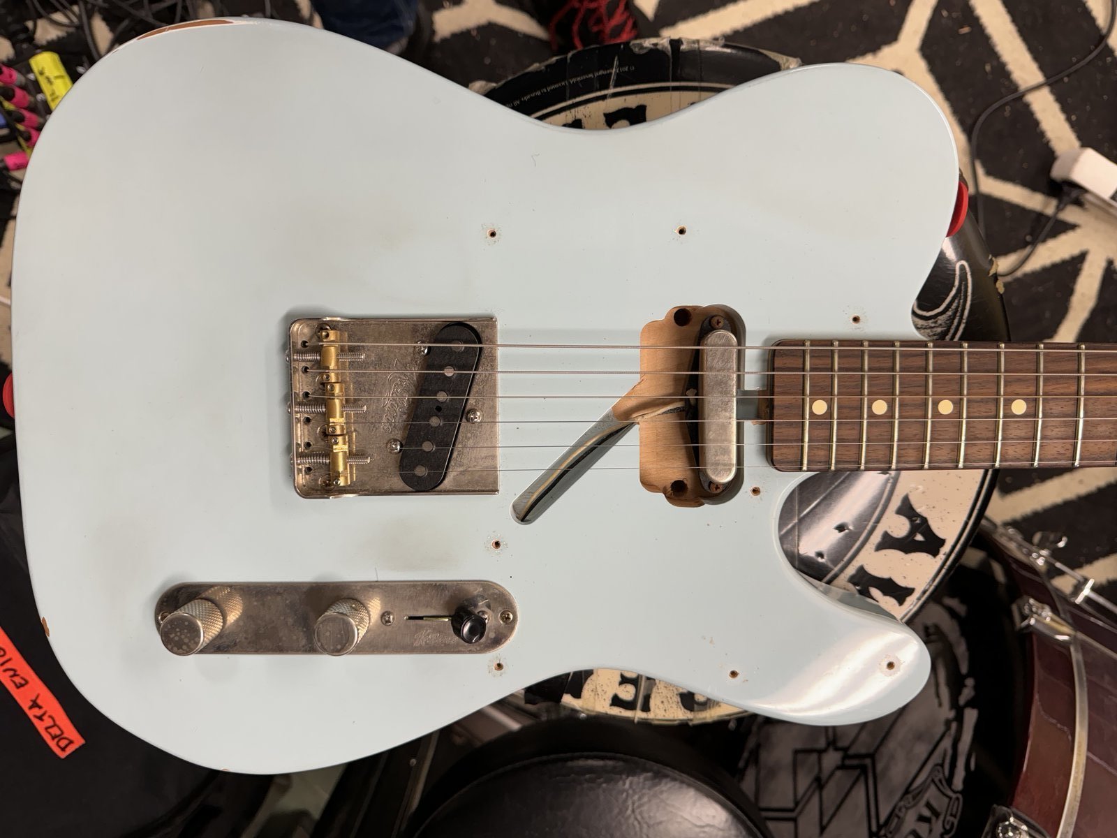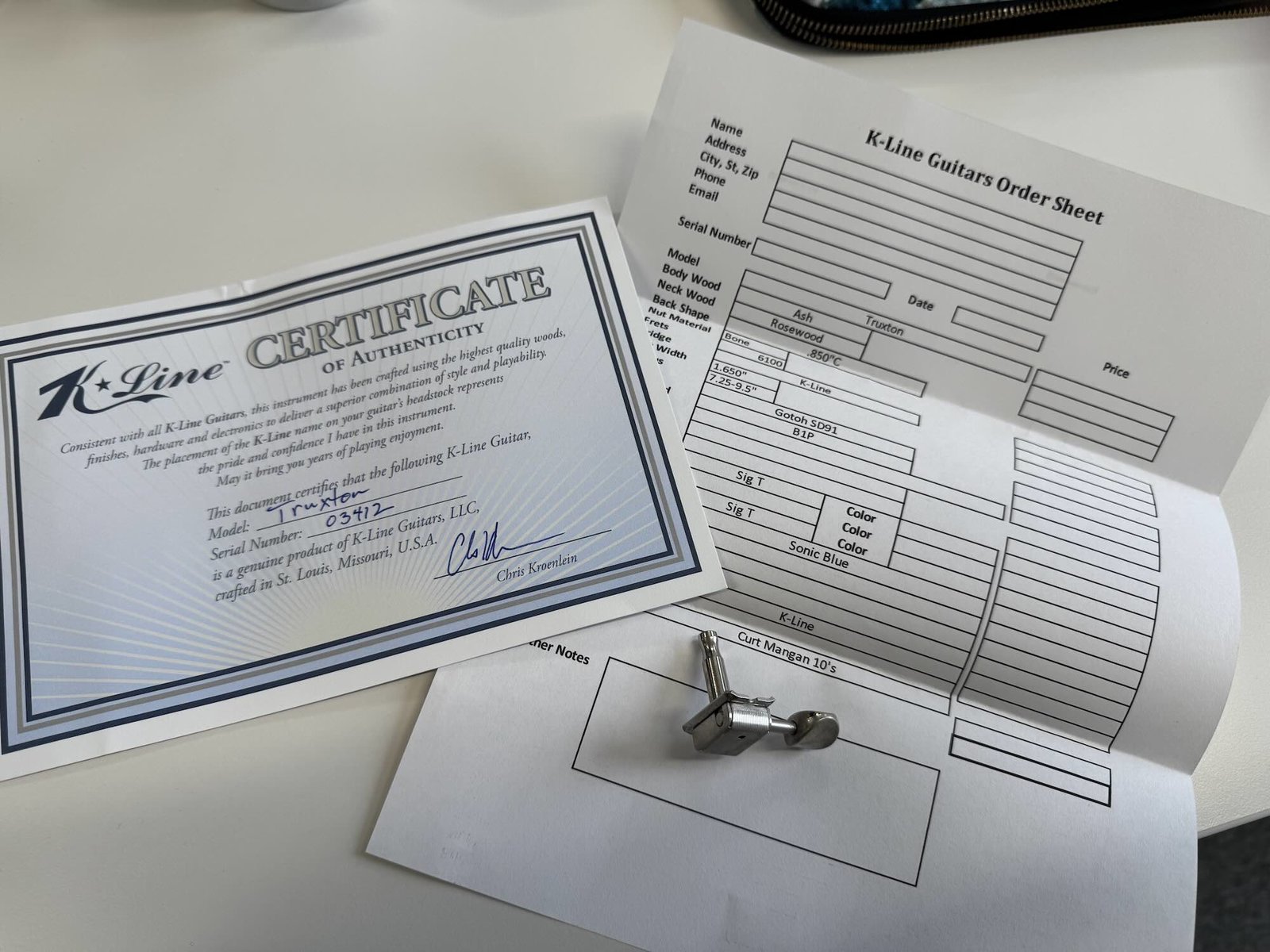 Myynnissä Kitarapajalta käytettynä ostamani K-Line. Kitara on alunperin Kitarapajan kautta tehty custom-tilaus. Color: Sonic Blue Body: Alder (Nitro Lacquer) Neck: One-Piece Maple (Bolt-on) Fingerboard: Rosewood Neck Shape: Early 60´s C-Shape Scale Length: 25.5″ Nut: 42mm Radius: Compound 7.25″ – 9.5″ Frets: Jumbo (2.5mm wide & 1.3mm high) Hardware: Aged Nickel Tuners: Kluson Bridge: K-Line w/Compensated Brass Saddles Pickups: K-Line Signature T Pickups Controls: 3-Way Switch, Volume & Tone Weight: 3.36kg K-Line Soft Case Muutamia huomiota: - Kitaraan on jälkikäteen tehty routtaus kaulahumpparille. Työ on Kitarapajan mukaan Lottosen tekemä, eli laadukkaasti tehty. - Kitaran sertifikaatti ei valitettavasti ole tallessa. - H-kielen virittimessä on vähän "löysempi" tuntuma kuin muissa. Se pitää kyllä vireen ongelmitta, mutta virettä madaltaessa tuntuma on löysä. Testaukset onnistuu treeniksellä Roihuvuoressa. PÄIVITYS: Sain K-Linen Chris Kroenleinilta uuden virittimen (itse asiassa kaksi) ja sertifikaatin, eli nämä aiemmat puutteet ovat kunnossa. :) Kuva näistä lisätty ilmoitukseen. Hinta: 2300 € | |