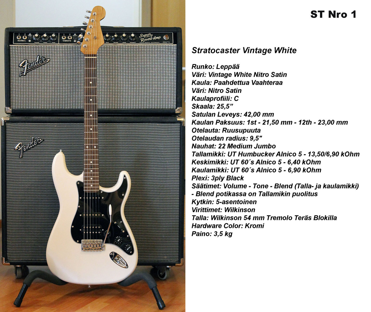 HUOM! NOUTO * Kitara on säädetty ST1 – Stratocaster Vintage White * Specsit löytyy kuvasta * Kitara on tehty uusista ja käytetyistä osista * Mikit ovat Uraltone Alnico 5 * Paino on 3,5 kg Hinta: 350 € | |