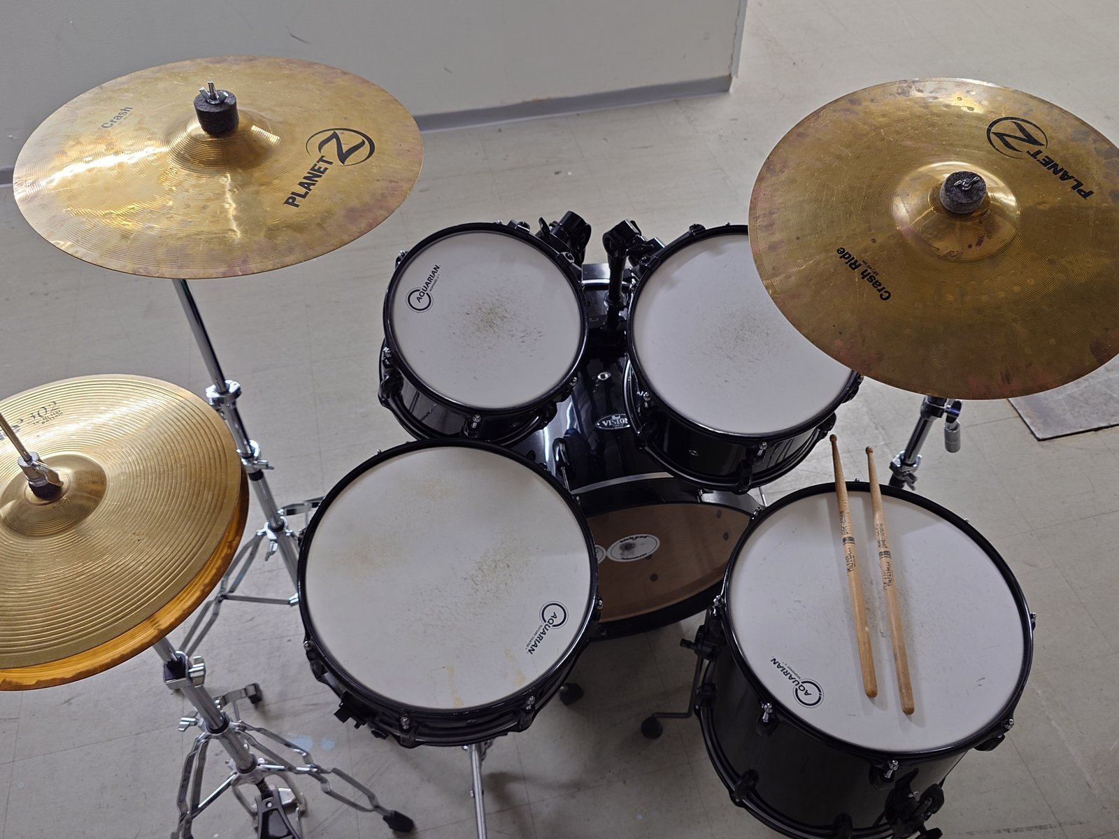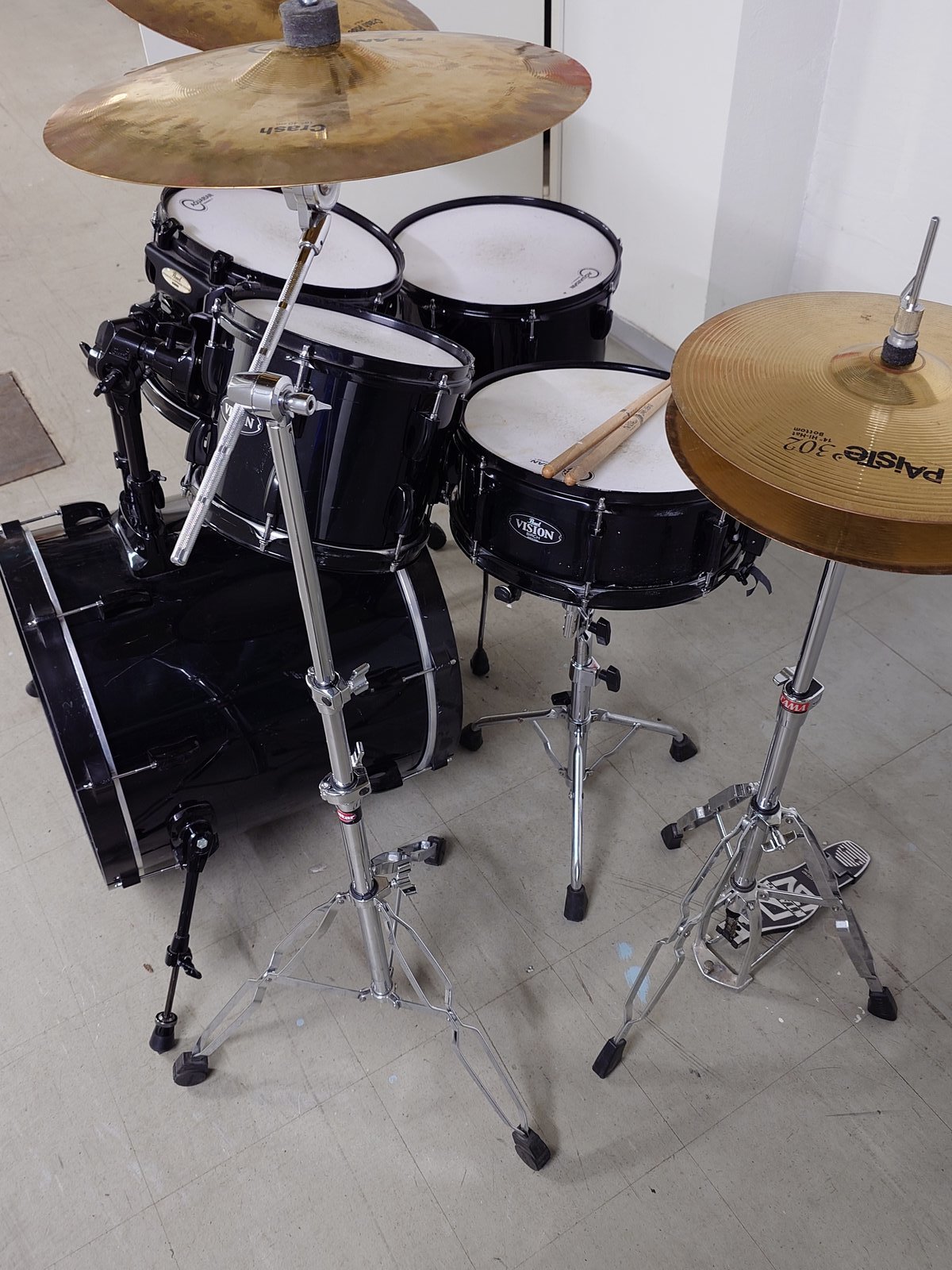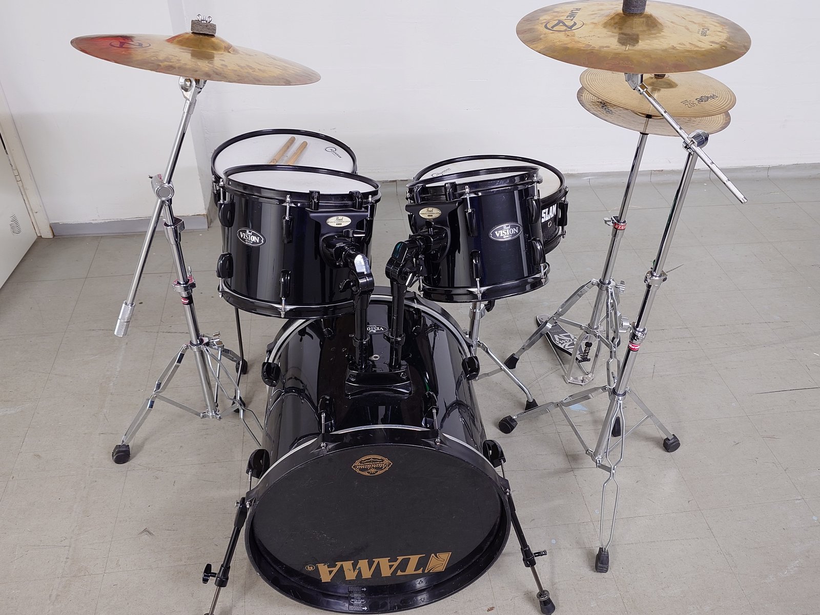 Perus Visionit koivua. - musta vinyylipinta ja rauta - accutune bassarivanteet. ( parempi kuin alkup) - Aquarian kalvot basari 20* 18" tomit 10,12,14" putket+ jalat virveli koivua 14*5,5" ######### telineet: Hh,virv,puomi,puomi. Pellit. : hh,crash,ride Hinta pöntöt 5 kpl ........... 490,-¤ telineet ja pellit mukaan yht ..620,-¤ basaripedaalia ei ole. ######## Tama Iron Cobra Power Glide + boxi löytyy hintaan .... 120,- ¤ ######## Zildjian Rock hihat 15" vanhat ehkä 80 luk Hinta ................ 300,-¤ ########### Bosbhorus Rock hats 14". uuden veroiset Hinta ............. 240,- ¤ Hinta: 490 € | |