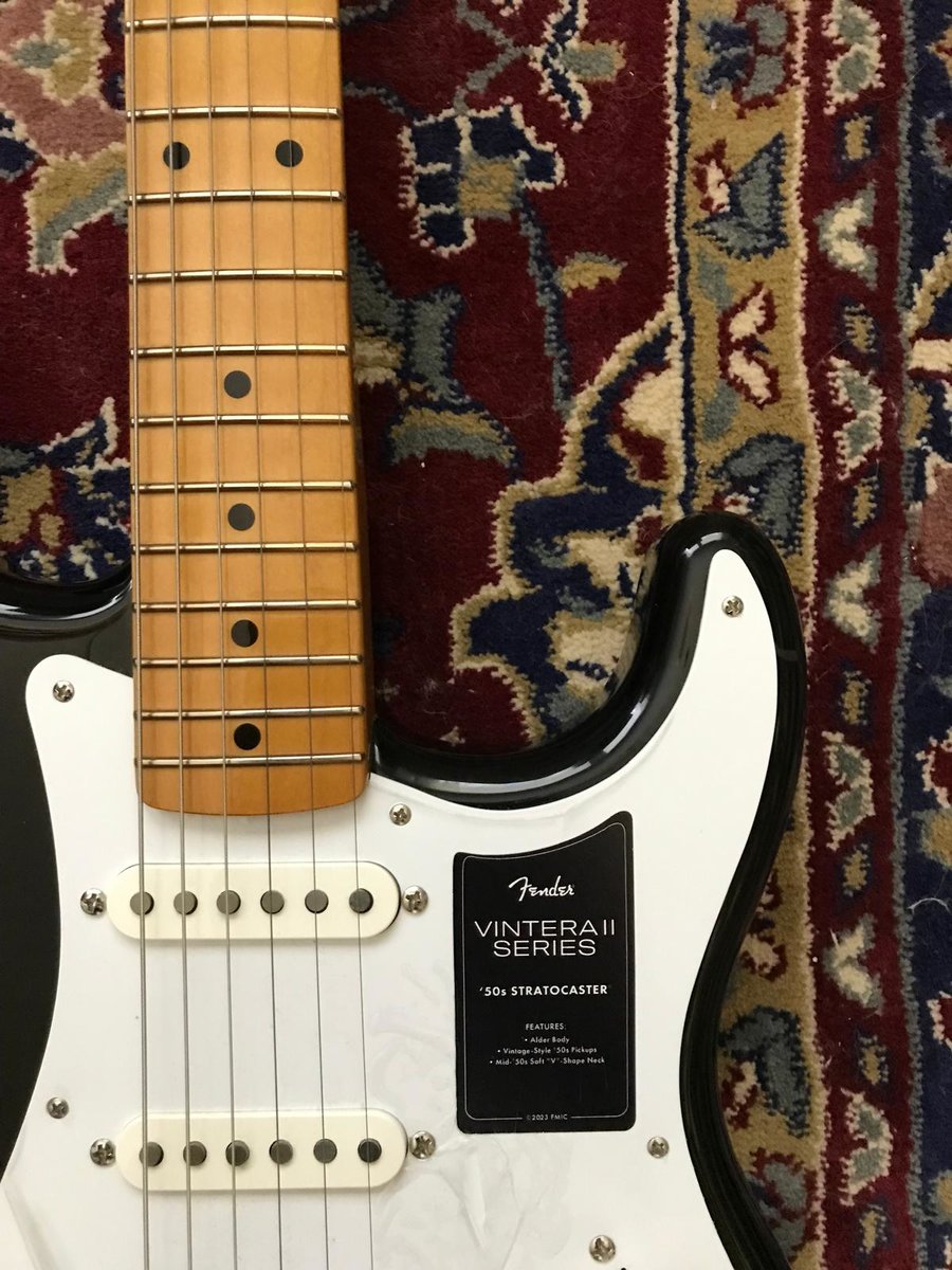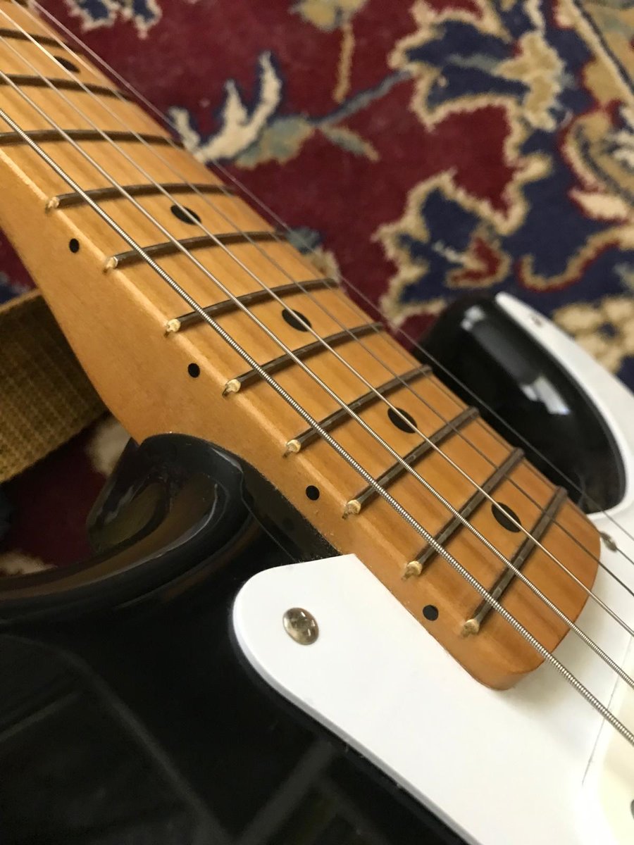 Mint kuntoinen kitara kyseessä ja takuuta vielä 1,5 vuotta jäljellä. Soittotunteja todella vähän ja kitara käytännössä uusi. Säädöissä 10-46 setille Speksejä Mid 50s soft V kaulaprofiili 7,25 radius Vintage tall nauhat Vintage style 50s-mikit Tuolta lisää infoa: https://www.fuzzfaced.net/50s-vinte … i-stratocaster.html#google_vignette Sijaitsee Joensuussa. Lähetys onnistuu ostajan piikkiin. Vaihdossa voi ehdotella tuhtikaulaisia stratocastereita samasta hintaluokasta. Maksan hieman välejä kyllä jos jotain arvokkaampaa tarjolla. Hinta: 900 € | |