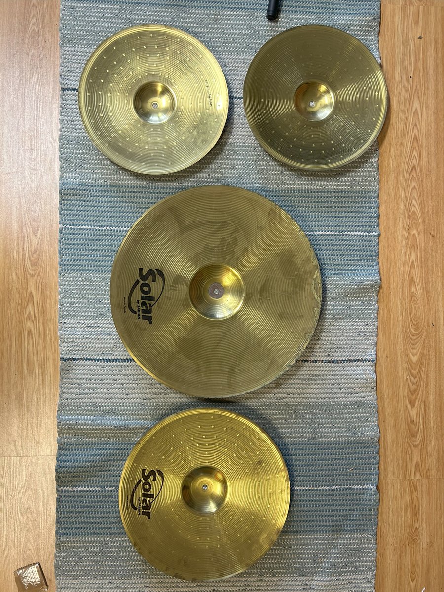 Myyntiin tarpeettomat Solar by Sabian pellit. - Hi-hat 14", kunto hyvä, ihan kelpo haitsut hintaisekseen, 20¤ - Ride 20", jonkin verran ajan patinaa, ei vaikuta soundiin, tämän sarjan paras lautanen, 30¤ . Crash 16", aivan kamala kattilankansi, sopii esim. hedelmätarjottimeksi tai kait tuosta joku näppärä askartelisi itselleen vaikka trash crashin. Ilmainen, saa mukaan halutessaan Tuosta ääninäytettä: https://www.youtube.com/watch?v=NnsuG92pwuU Pakettihinta 45¤ Noutohommat Hiukkavaarasta, tai lähettäminenkin onnistuu ostajan piikkiin. Yhteys mielellään txt/whatsapp 040-7027653 Hinta: 45 € | |