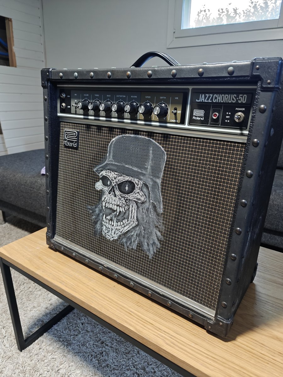 Legendaarisen JC-120 pikkuveli, suoraan kasarilta Japanista (valmistusvuosi -80). Ikäisekseen yllättävän siisti, jos ei ota huomioon tuota pääkalloa (mikä on sekin kyllä siististi tehty). Ääntä lähtee perkeleesti ja ottaa pedaalit vastaan hienosti. Jos tässä olis efektilooppi niin pitäisin itselläni, mutta kun ei niin ei. Edit: Nytkun ehdin tutustumaan laitteeseen tarkemmin, todella pienellä volumella soittaessa pientä ääntelyä = konkkaremppa tiedossa jossain vaiheessa. Isolla volumella ei vaikutusta, rokkaa ja rollaa. Siitä syystä halvalla asiasta kiinnostuneelle tai sellaisenaan rokattavaksi. Vaihdossa: 2x12" kaappi, 4x12" kaappi, Jet guitars kitarat (erityisesti JJ mallit), Burgera kombot/Nupit Hinta: 200 € | |