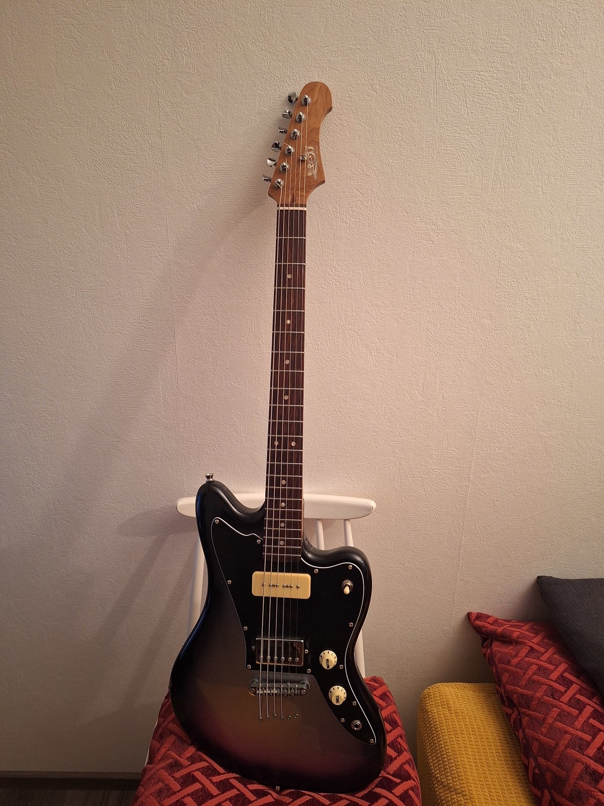 Hetken mielijohteesta myyntiin otsikon ja kuvien tuote. Soitettu todella vähän, suurin syy mielijohteelle onkin ettei aika riitä leikkimään tällä. Kitaran on säätänyt kohdilleen Erkki Tolsa, jonka jälkeen soitettu yhteensä 2-3 tuntia. Kielet (Ernie Ball Slinky Baritone) hyvässä kunnossa ja kitara yleisesti erinomaisissa säädöissä. Kitara soi ja resonoi hyvin. Speksejä: https://jetguitars.com/guitars/350- … ries/jet-jj-350-baritone-moonburst/ Hinta tiukka, ei vaihtoja. Vain nouto Jyväskylän Kuokkalanpellosta, sillä mukana ei tule pussia. Pikaviesti, sähköposti ja tekstari tavoittaa. Hinta: 350 € | |