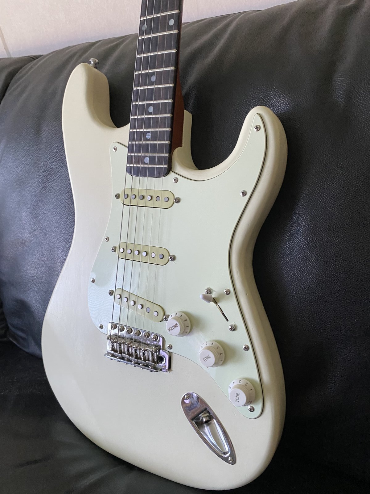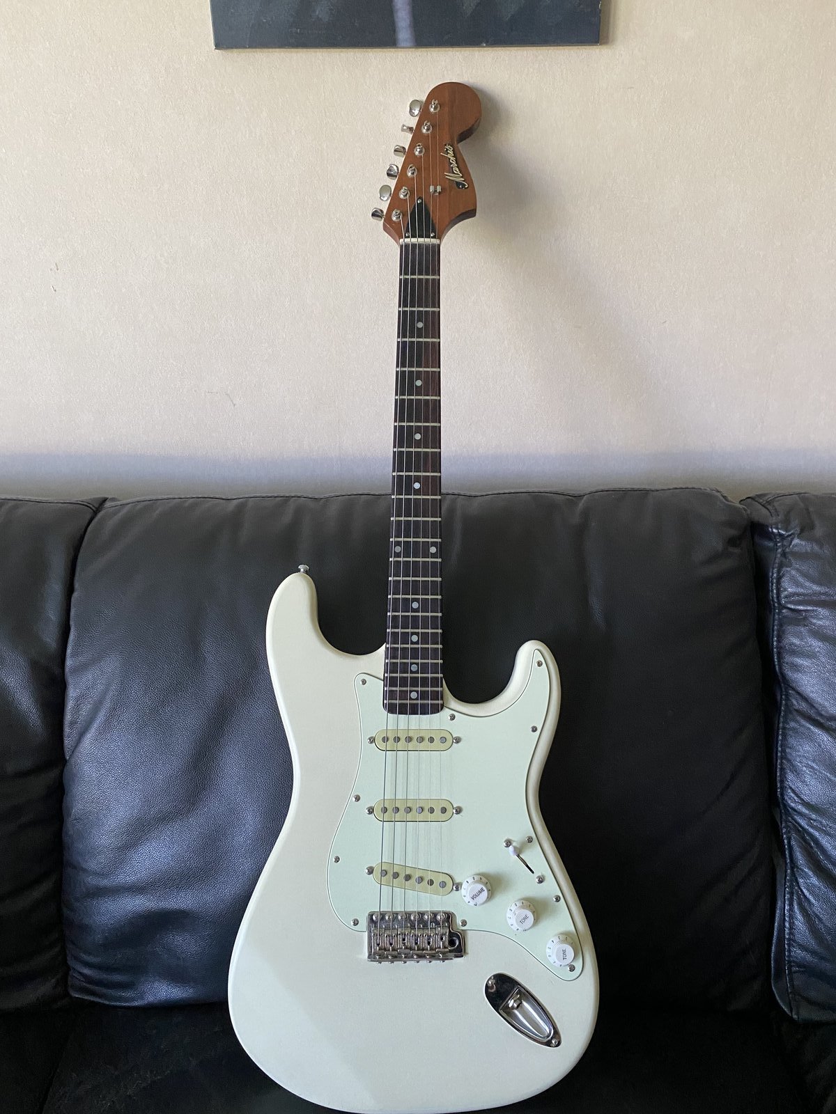 Japanilainen Marchis kaula,wilkinson tuners.Raitabody,nitrolakattu,Häiriösuojattu kuparilla.mojotone 59 cl mikit, emerson presoldered sähköt,wilkinson talla.Ei häpeä F mallisiin skittoihin, hyvä sustain.Ei laukkua mut hyvin pakattuna lähetän.Lähetys sisältyy hintaan. Ei vaihtoja Hinta: 300 € | |