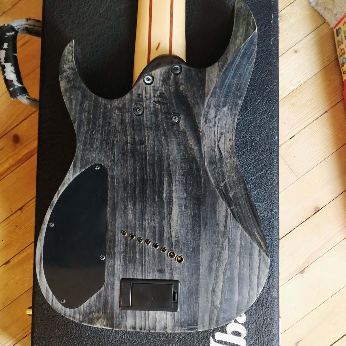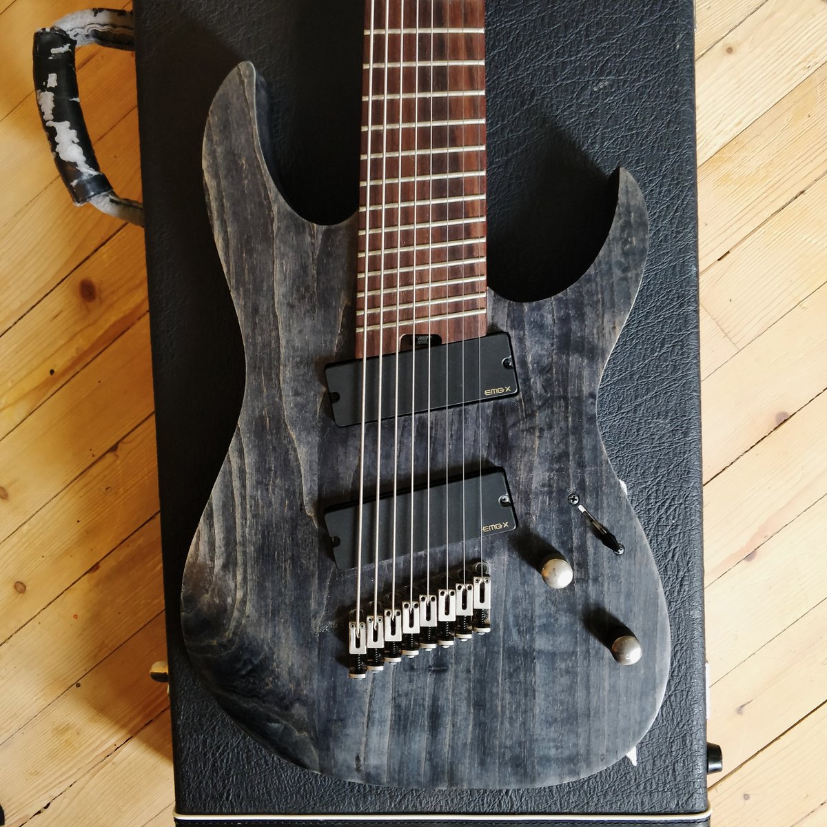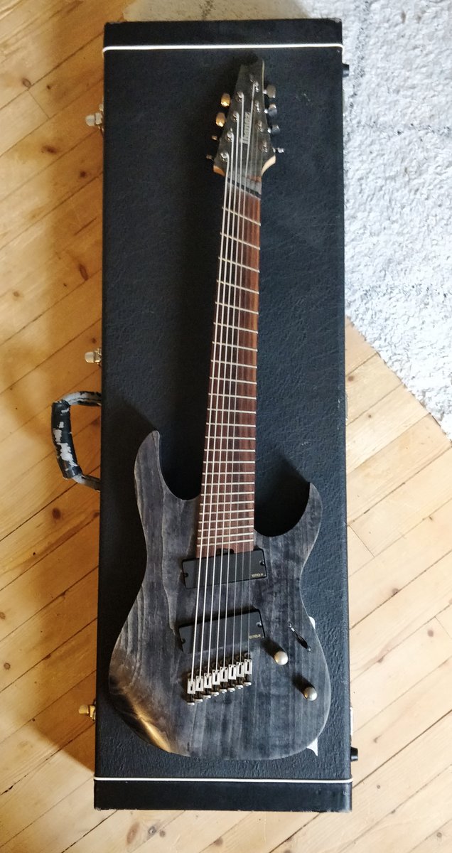 Myyntiin tamppaushintaan Ibanezin multiskaalainen kasikielinen fanned fret mörkö. Mukaan valmistajan oma, laadukas kova laukku. Ikänsä ajan hyvin pidetty, pääasiassa drop E tai D vireessä. Ainoina kosmeettisina huomautuksina muutama plektran riipimä kielien alla (kuva) sekä valoa vasten näkyvää normaalia pinnan rasvoittumista samasta kohdasta/potikoiden ympäriltä. Pirun mukava soittaa ja moneen taipuva, todella laadukas lankku. • 5pc Maple/Bubinga Nitro Wizard 7 neck (25.5" - 27.2") • Ash body • Fanned frets • Rosewood fretboard • Mono-rail bridge • EMG 909X pickups Ei vaihtoja. Sijaitsee Toijalassa, mielellään nouto. Postitus/matkahuolto toki vastaanottajan kustannuksella ok. Hinta: 650 € | |