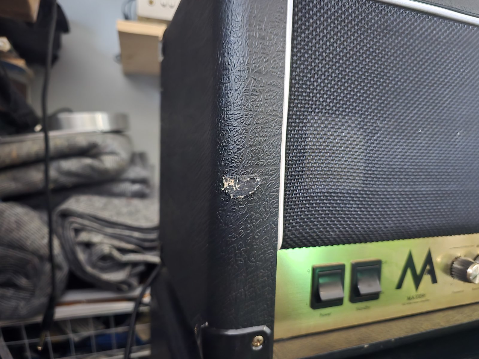 Vaihdossa tullut putkinuppi tarpeettomana. Tolexissa näkyy jälkiä, ei mitään vakavaa kuitenkaan. Tällä hetkellä putkina 6L6:t. Kanavanvaihtopedaali mukaan. Ei tietääkseni modattu. Tee tarjous jos houkuttaa. Whatsapilla/viestillä tavoittaa parhaiten. Vaihdossa voi tarjota angled 212-pystykaappia, ei mielellään V30:llä kun mulla sellainen jo on, ehkä Eminence Texas Heat, WGS Reaper/Retro30/jne. Mieluiten nouto/face to face. Lähettämistäkin voi harkita ostajan vastuulla, mikäli joku sen oikeen kovasti haluaa. Myynnissä myös Tori.fi:ssä Hinta: 400 € | |