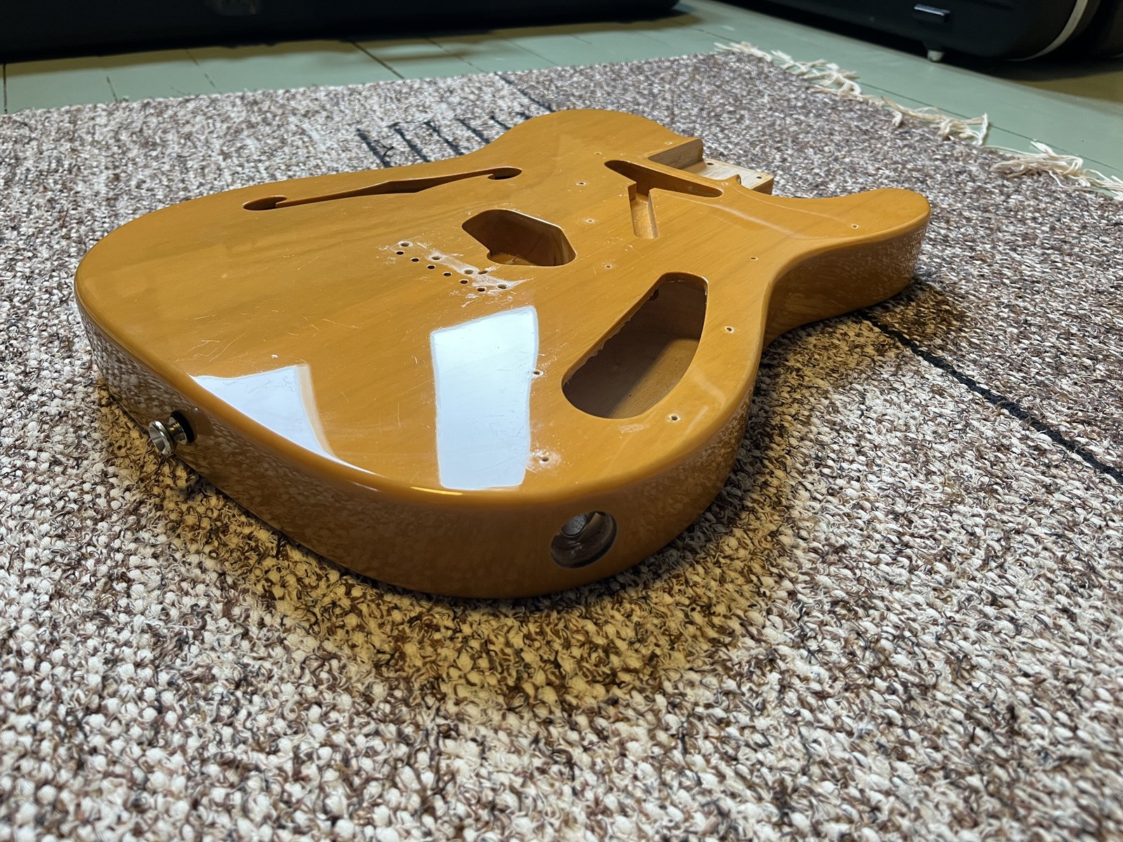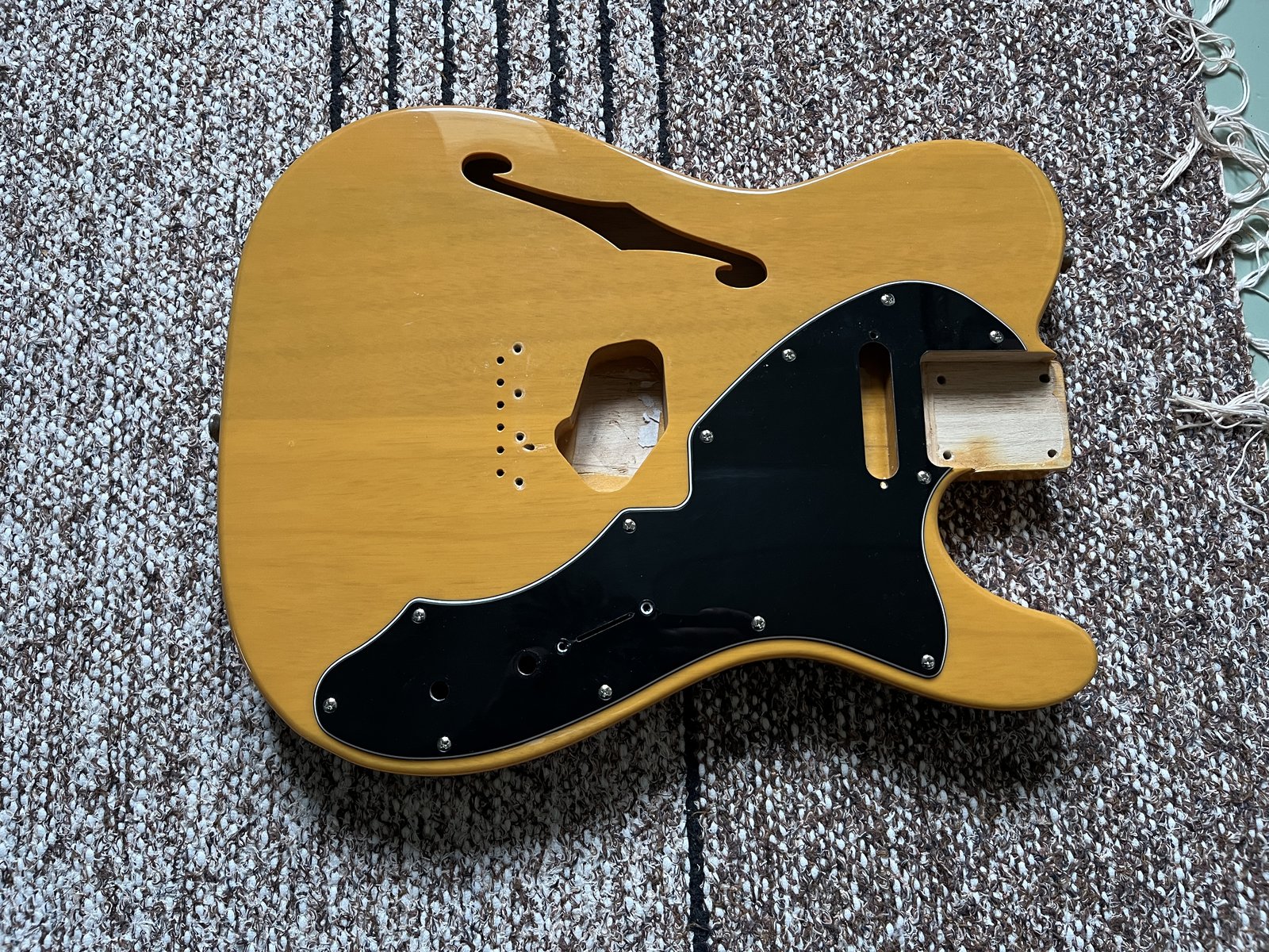 | Squierin classic vibe body butterscotch - värityksellä. Tää oli joku factory special run. Oikein siistikuntoinen ja ihan kevyt runko. Perus pientä jälkeä löytyy toki, kun on soittopelinä ollut, mutta isommilta naarmuilta ja dingeiltä on säästytty. Kaulataskun alapuolella on pienesti maali lohjennut. F-aukosta näkyy myös että sisäpuolella on pieni halkeama. Tämä on ollut jo itselle saapuessa, eikä ole muuksi muuttunut ~4:n vuoden aikana. Voidaan siis stabiiliksi sanoa. Pleksi on alkuperäinen, ja siinä myös plektrakulumaa, ei muuta isompaa. Sähköt, mikit, ja talla ei kuulu mukaan, mutta niistä voidaan keskustella! Mukaan siis: Body Pleksi + ruuvit Hihnatapit Kieliholkit Squierin kaulalätkä Löytyy Tampereelta Rantaperkiöstä, nouto tai lähetys sopii. Noudettaessa saa katsoa ja vaikka sovitella kaulaa paikalleen. Lähetyksessä ottaisin 10e matkahuollon kuluja päälle. Hintapyyntö 170 Hinta: 170 € | |