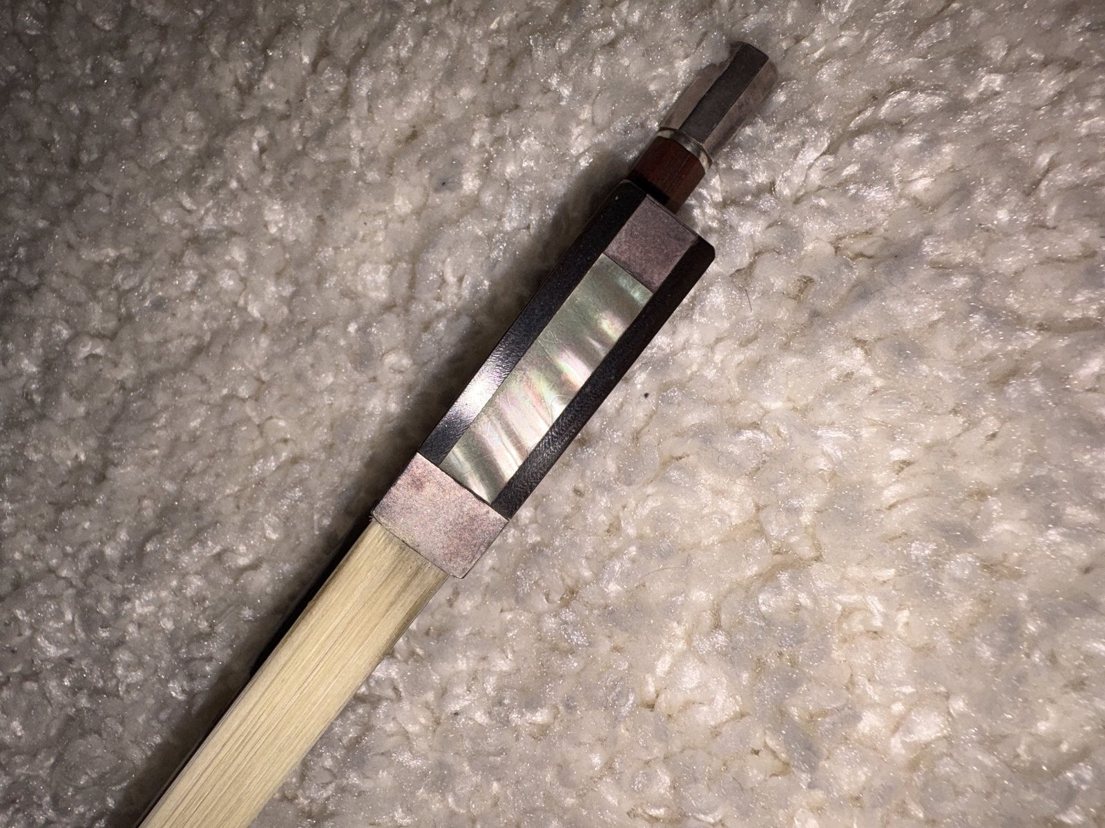 - 4/4 - Kolme tähteä *** - Hopeahela - Frossi joko kilpikonnankuoresta tai norsun/mammutinluusta - Paino 60.8 g - Arvioitettu kahdella jousi-asiantuntijalla syksyllä 2025, hinta-arvio 1500-2000¤ - Helppo ja virtuoottinen soittaa, ollut ammattikäytössä. Huom! Jousen kärkiluu korjattava, myyjä voi korjauttaa sen tai vaihtoehtoisesti hinnasta voidaan sopia sen mukaisesti että ostaja korjauttaa itsenäisesti haluamassaan paikassa. Ota yhteyttä. Saa myös tarjota. Hinta: 1700 € | |