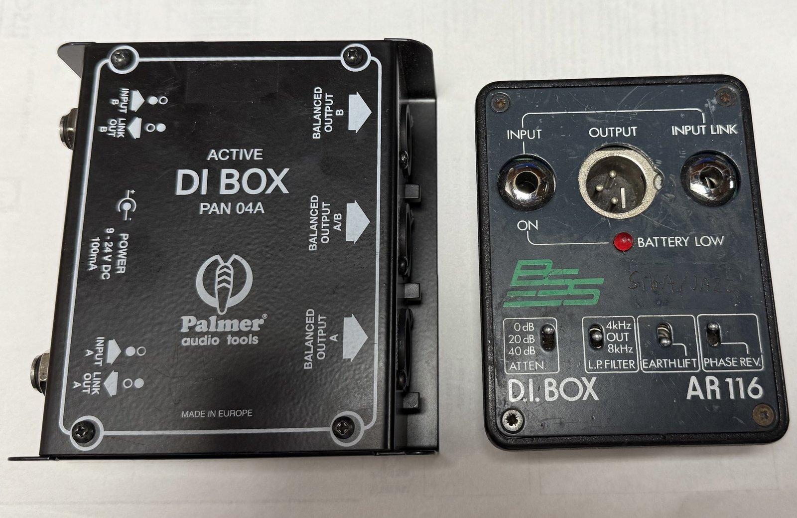 Palmer PAN 04 A aktiivinen stereo-DI -hyväkuntoinen ja todella vähän käytetty Hp. 100 eur BSS AR-116 klassikko, aktiivinen DI -siisti ja hyväkuntoinen Hp. 60 eur Shure UHF-R langaton mikrofoni + vastaanotin -Shuren vanhempaa huippusarjaa -Taajuusalue G1E 470-530 MHz -KSM 9 huippukapseli -UR4S vastaanotin -UR2 käsilähetin Hp. 500 eur Hinta: 60 € | |