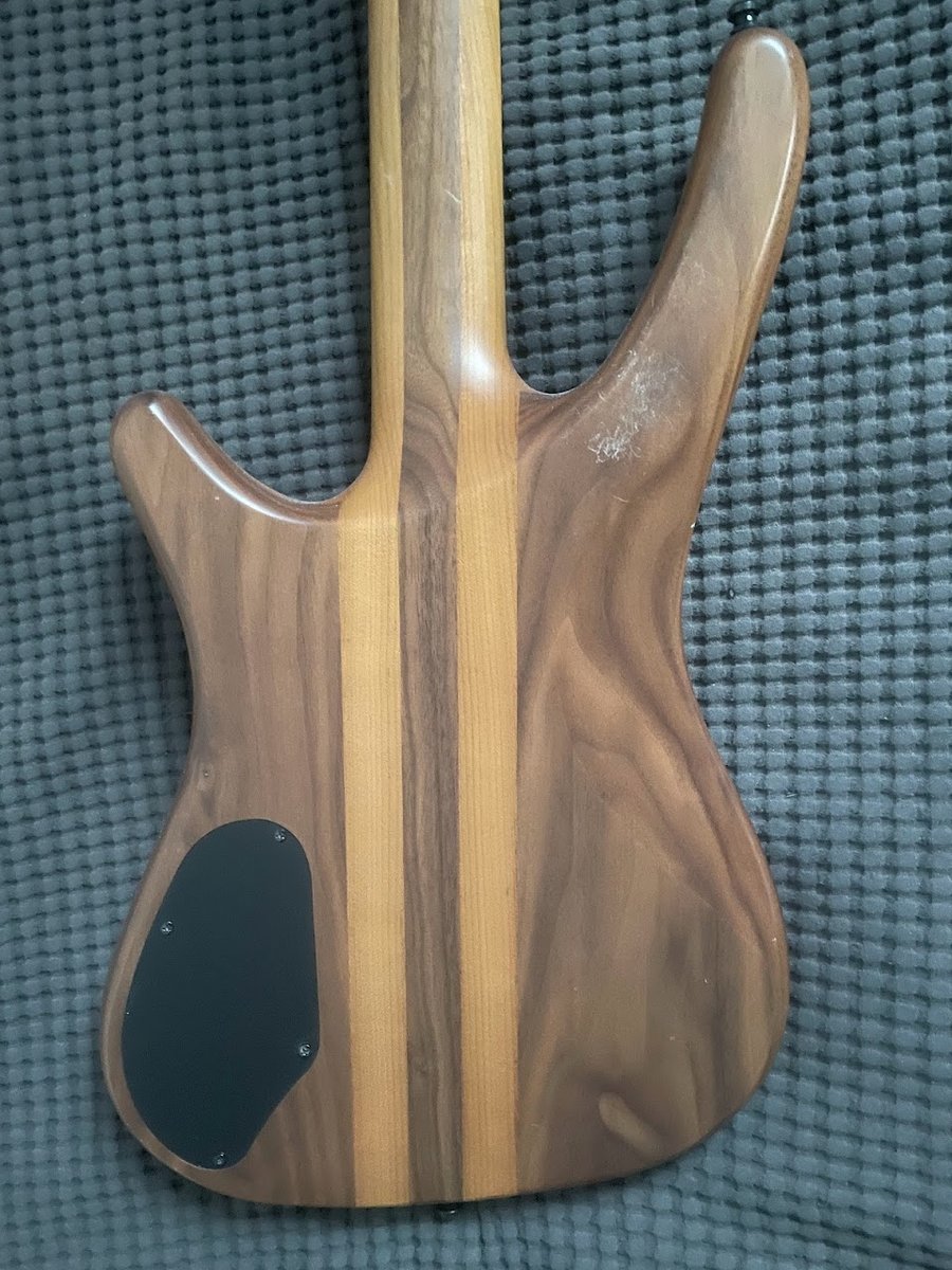 Myydään/vaihdetaan mainitun basson EMG-modattu versio bänditoiminnan kuihtumisen takia. Mikeiksi vaihdettu EMG:n tbhz humpparit, jotka kytketty EMG:n BTC-hz esivahvistimeen. On kuuden vuotensa aikana nähnyt reeniskäyttöä, mikä ns. "näkyy naamasta". Soitin on jotenkin kuin Warwickin ja Ibanezin hybridi. Koreassa tehty laatubasso orkkishintaansa nähden hyvin ominaisuuksin (jumbo teräsnauhat, neck-thru, rungon ja kaulan puut...). Hinta: 500 € | |