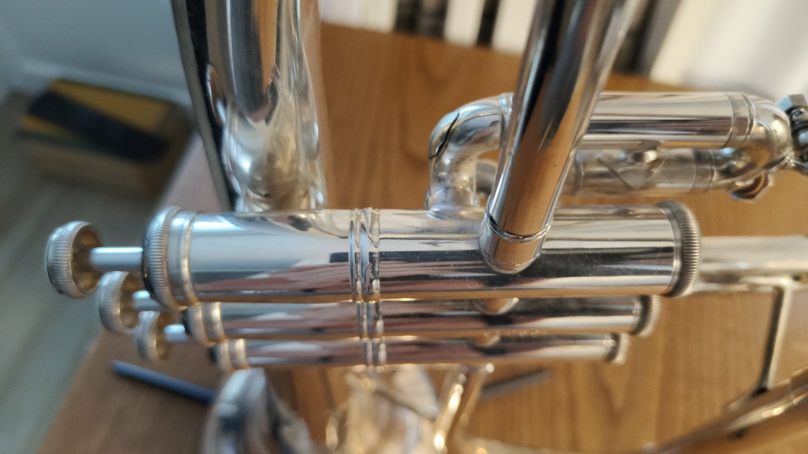 Kunto hyvä. Huollettu RoHissa pari vuosi sitten, sen jälkeen soitettu muutama kerta. Mukaan Protec laukku ja K&M standi. Lähes virheetön, yksi pieni lommo kolmosventtiilin putkessa. Hinta: 1000 € | |